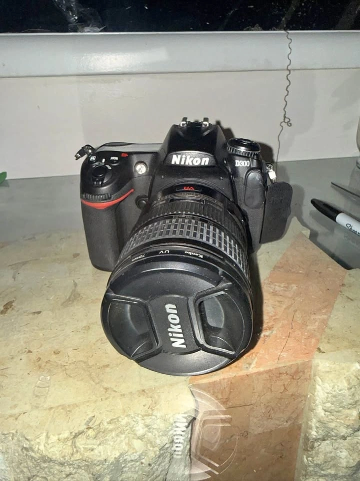 Nikon D300 DSLR camera with Nikon 18-200mm VR zoom lens. Camera and lens are in good physical condition and were working properly. Battery no longer holds charge and will need replacement. Charger is included. Great setup for photography hobbyists, as a backup camera, or for someone who already owns Nikon EN-EL3e batteries, or for repair/resale. Includes: Nikon D300 camera body, Nikon 18-200mm VR lens, lens cap, Nikon battery charger, and what you see in photos. Battery replacements are inexpensive and easy to find online. Pickup preferred. Cash only or e-transfer.