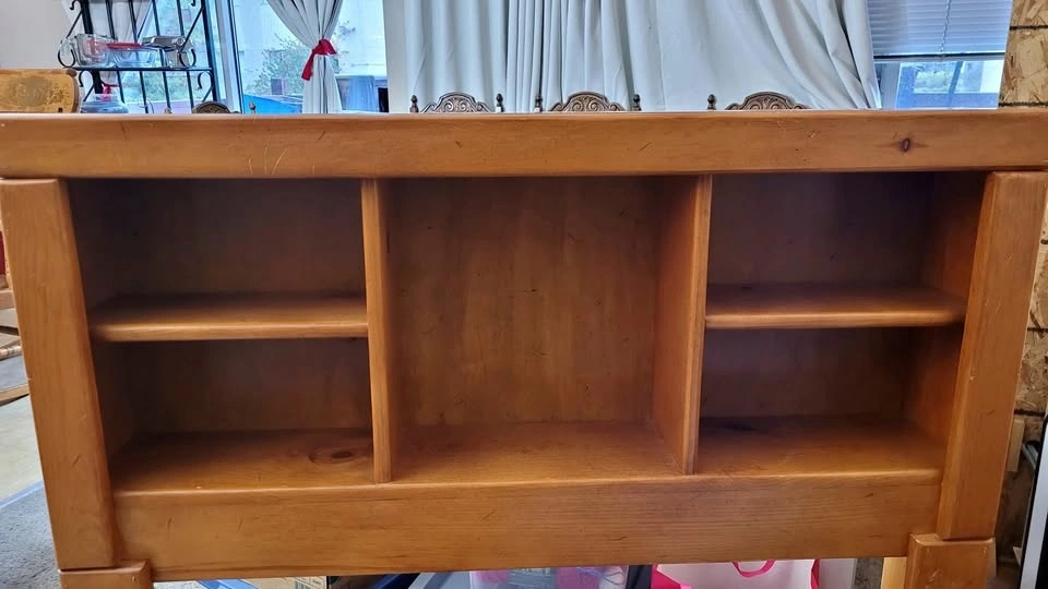 Bookcase Headboard: Features three spacious cubbies (two with fixed shelves) to replace the need for a nightstand—perfect for books, clocks, or a lamp.