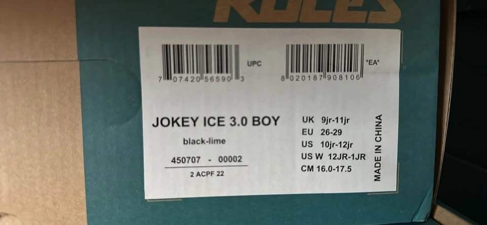 JOKEY ICE 3.0 BOY Adjustable ice skates. Available sizes: US Women's 4.5-6.5 (EU 34-37), US Women's 7-10 (EU 38-41), and US Youth 12jr-1jr (EU 26-29).