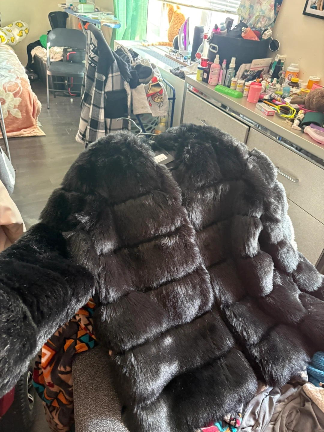 Buy & SellBlack Faux Fur JacketBlack Faux Fur Jacket$74Black faux fur jacket with horizontal paneling. This cozy jacket is perfect for cooler weather. It's a stylish addition to any wardrobe!WHERE TO MEETCheck LocationView MapSELLERverifiedLashayParkchester1113 reviews1 chats·0 favorites·24 viewsSEND CHAT TO SELLERHi Lashay! I’m interested in your listing.Hi Lashay! I’m interested in your listing.Get the Karrot app to chatSign In to chat