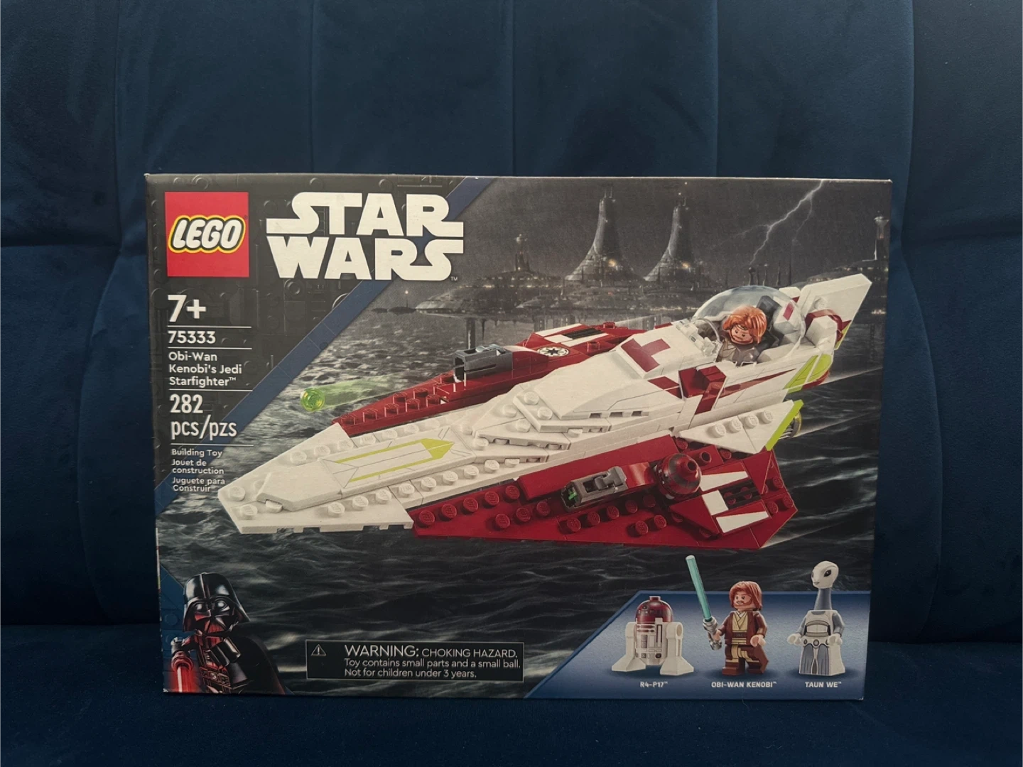 This LEGO Star Wars set features Obi-Wan Kenobi's Jedi Starfighter with 282 pieces. It includes R4-P17, Obi-Wan Kenobi, and Taun We minifigures. The set is suitable for ages 7+.