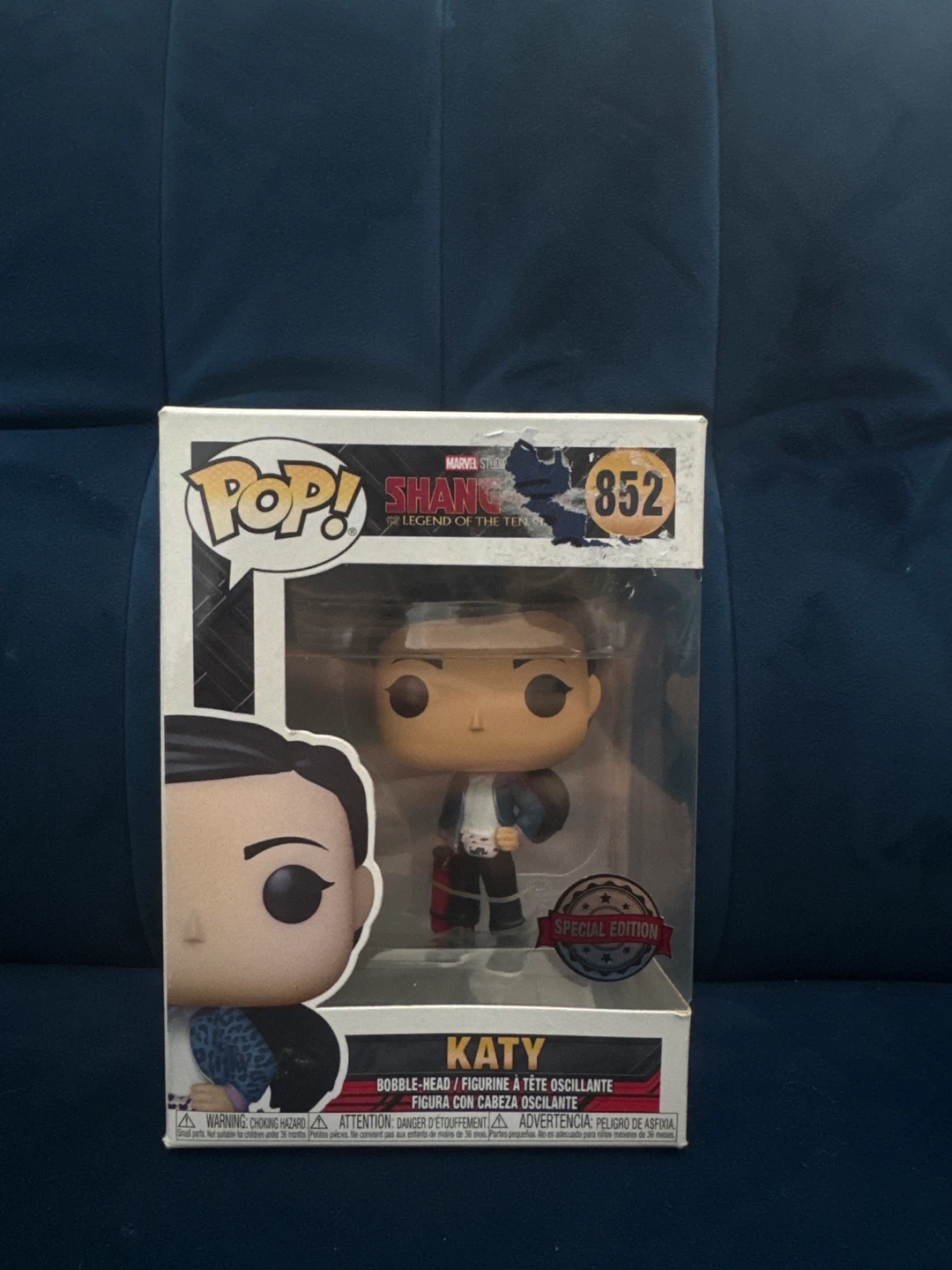 This is a Funko Pop! vinyl figure of Katy from Marvel Studios' Shang-Chi and the Legend of the Ten Rings. It's a special edition collectible, number 852 in the series. This figure is great for any Marvel fan or collector! Unopened!
