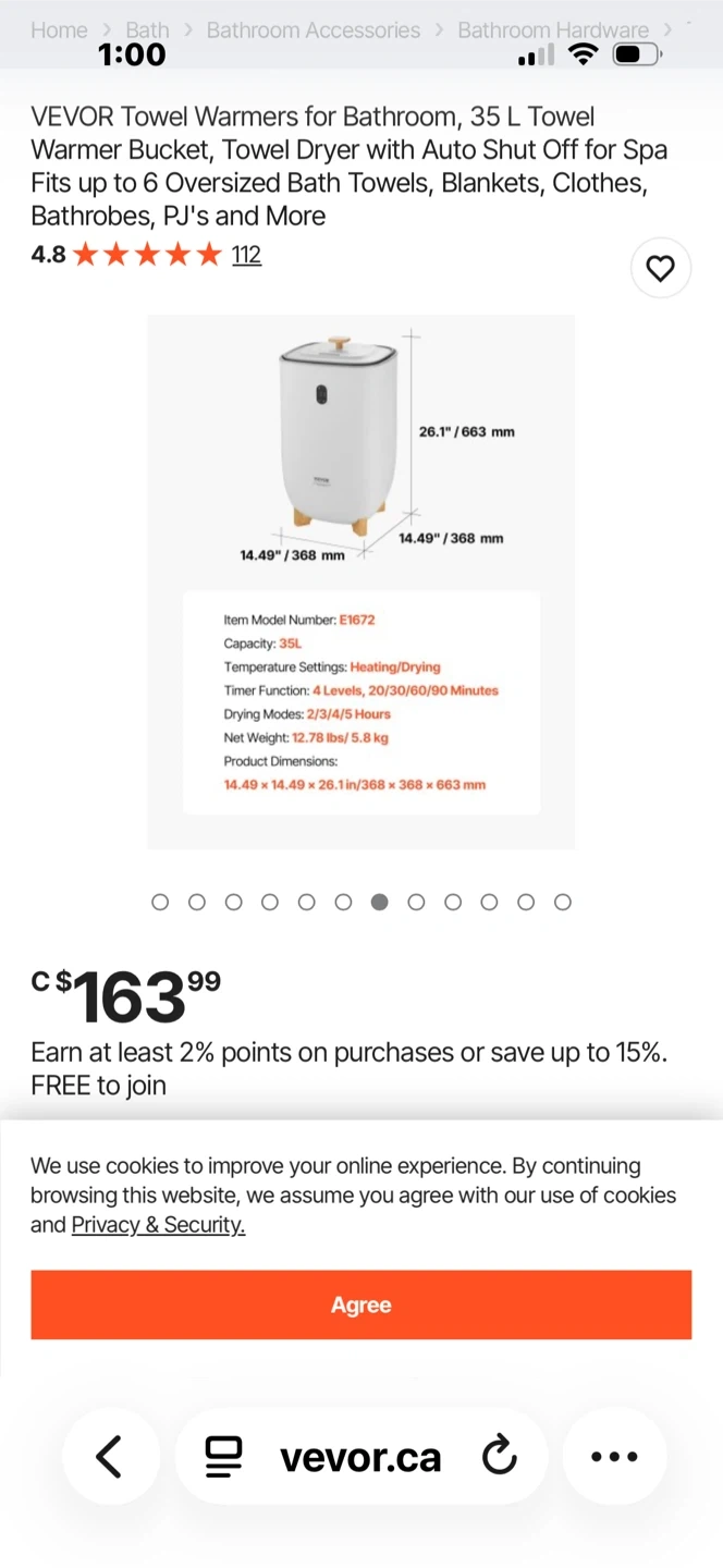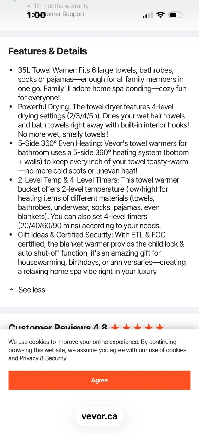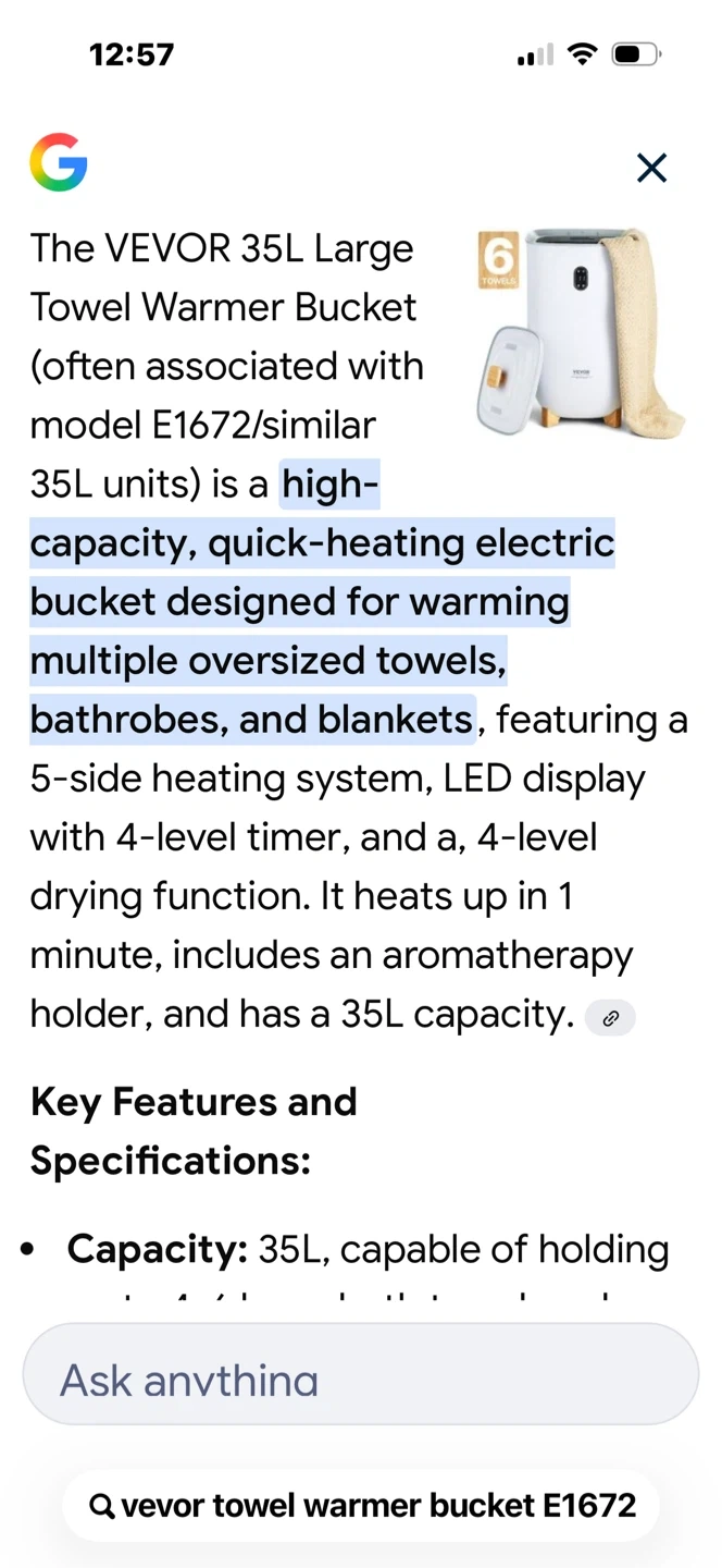New XL 35L warmer will have your towels, blankets or anything ready and warm to snuggle into. Also dries damp items.