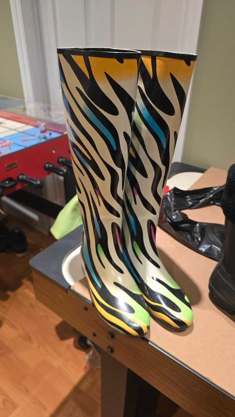 Buy & SellHenry Ferrera Rain Boots - Size 8Henry Ferrera Rain Boots - Size 8$20These tall rain boots feature a fun zebra stripe pattern with rainbow accents. They're made of rubber for waterproof wear. Worn onceConditionLike newSizeSize 8WHERE TO MEETCheck LocationView MapSELLERverifiedstephanieWestney Heights1206 reviews0 chats·0 favorites·9 viewsSEND CHAT TO SELLERHi stephanie! I’m interested in your listing.Hi stephanie! I’m interested in your listing.Get the Karrot app to chatSign In to chat