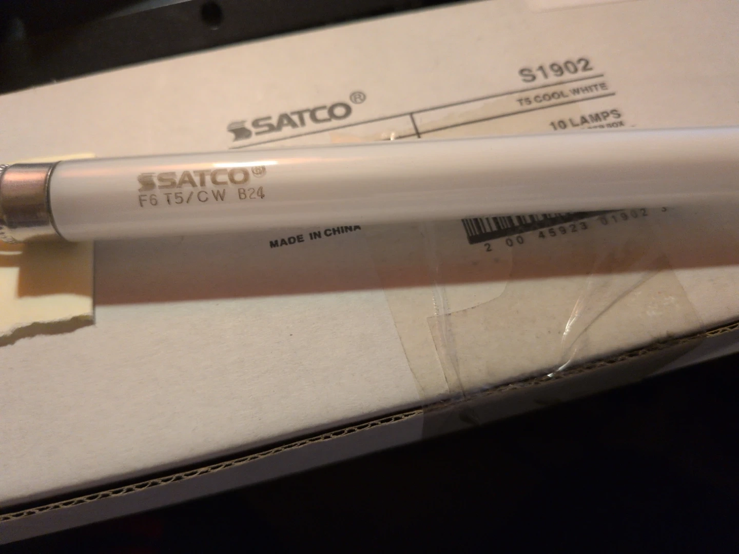 10 count - SATCO F6 T5/CW fluorescent tube light in cool white. It's a 6W bulb with a mini bi-pin base. Avg. life is 5,000 hours and it produces 270 lumens. This light would be useful for general illumination in workspaces or residential areas.