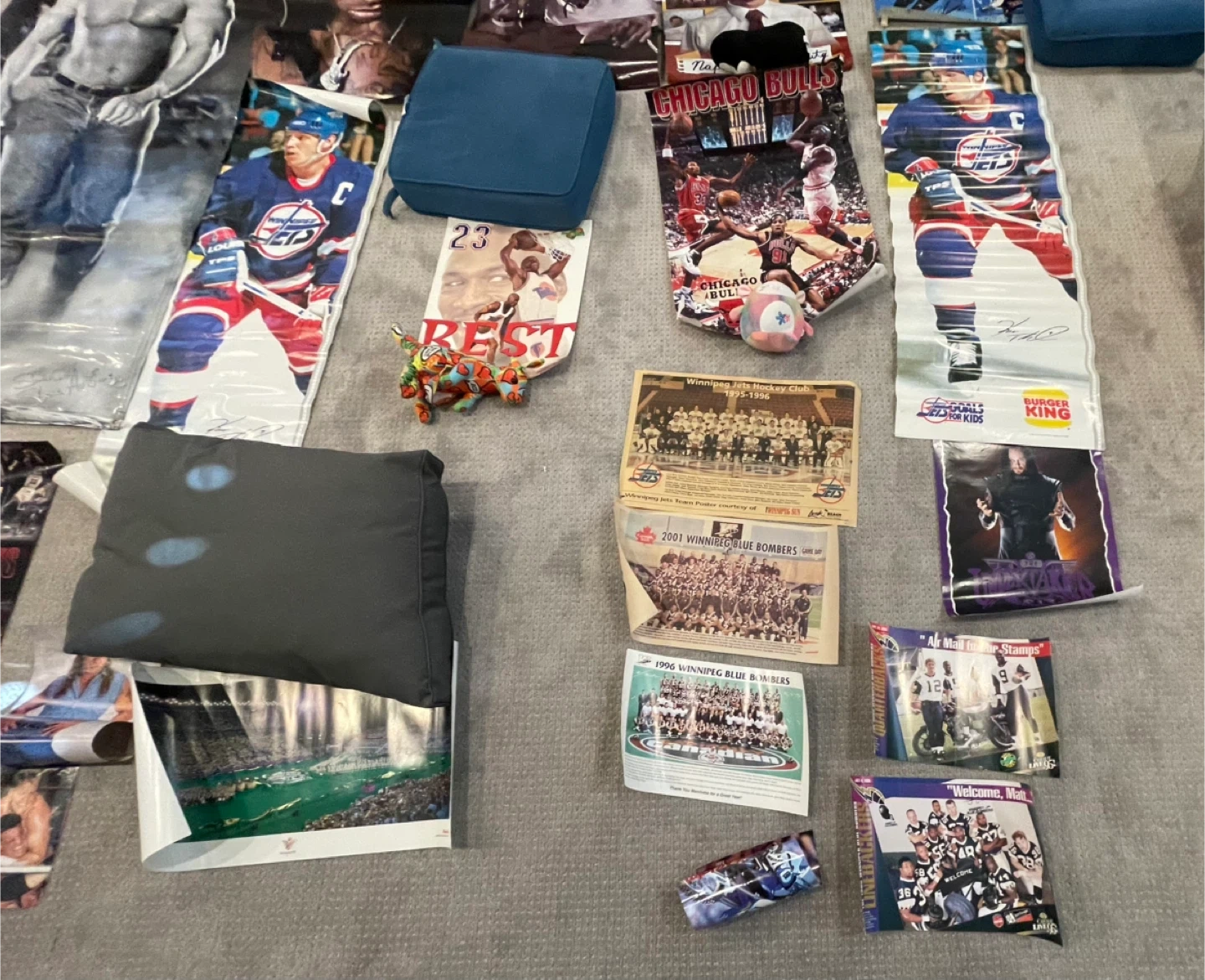 Collection of posters and photos featuring various celebrities from the 90s and 2000s, including athletes and musicians. These are perfect for collectors or fans wanting a blast from the past!