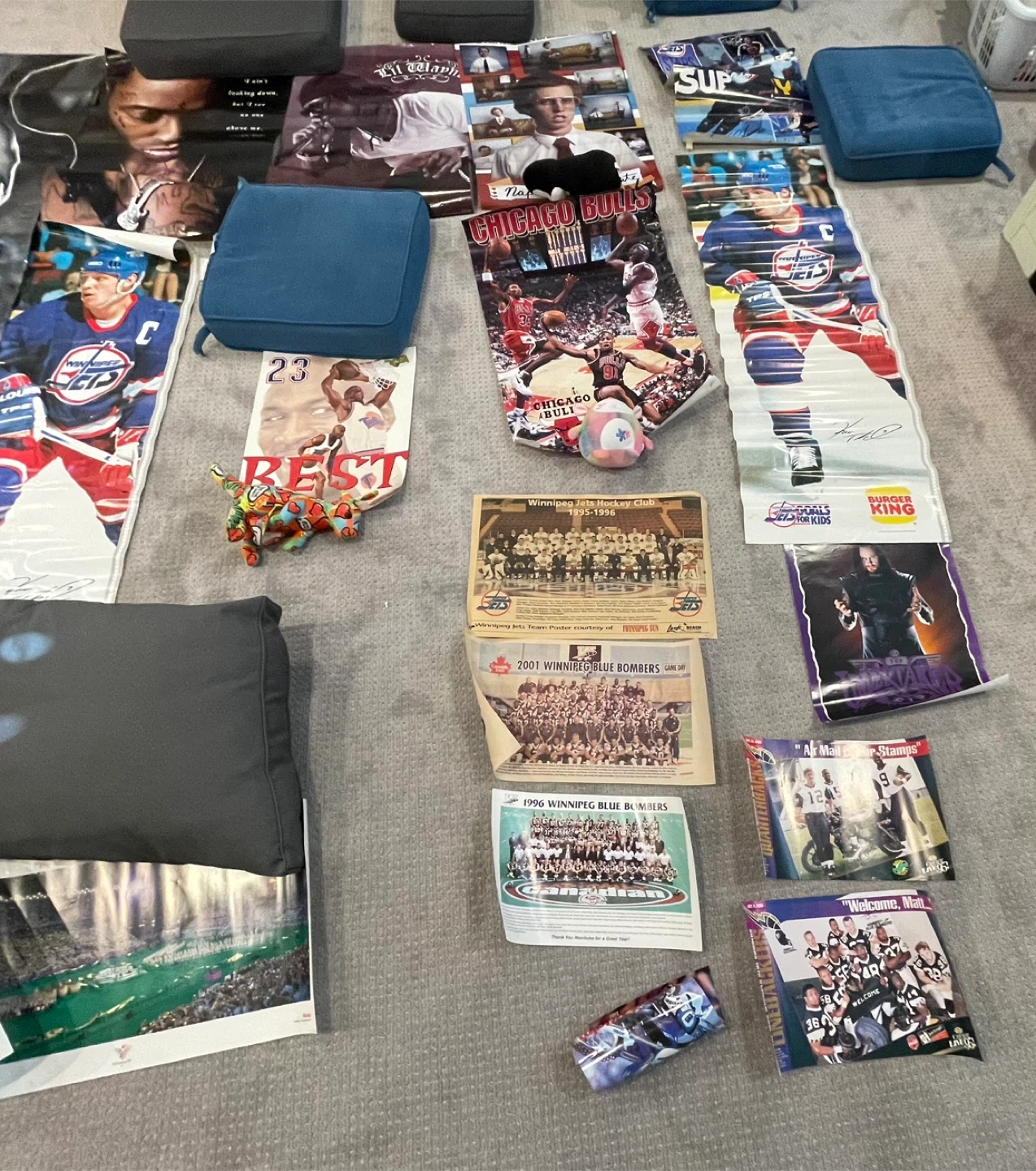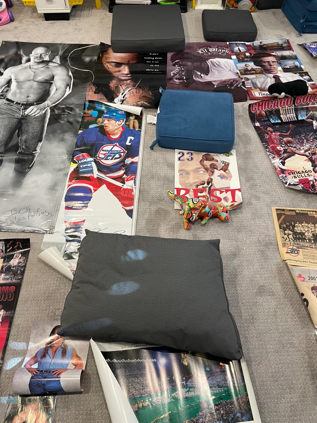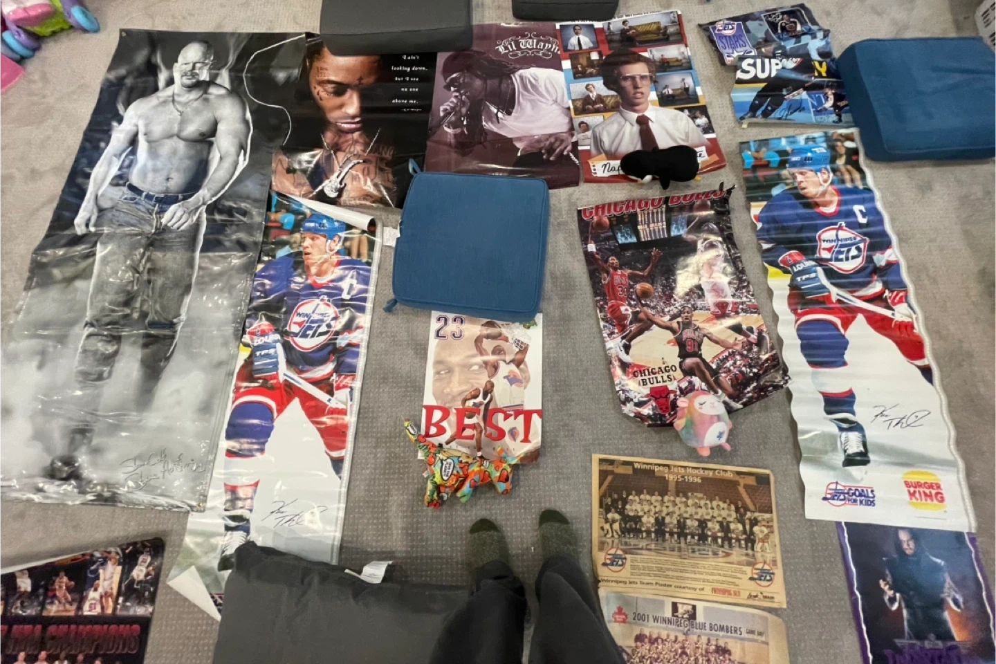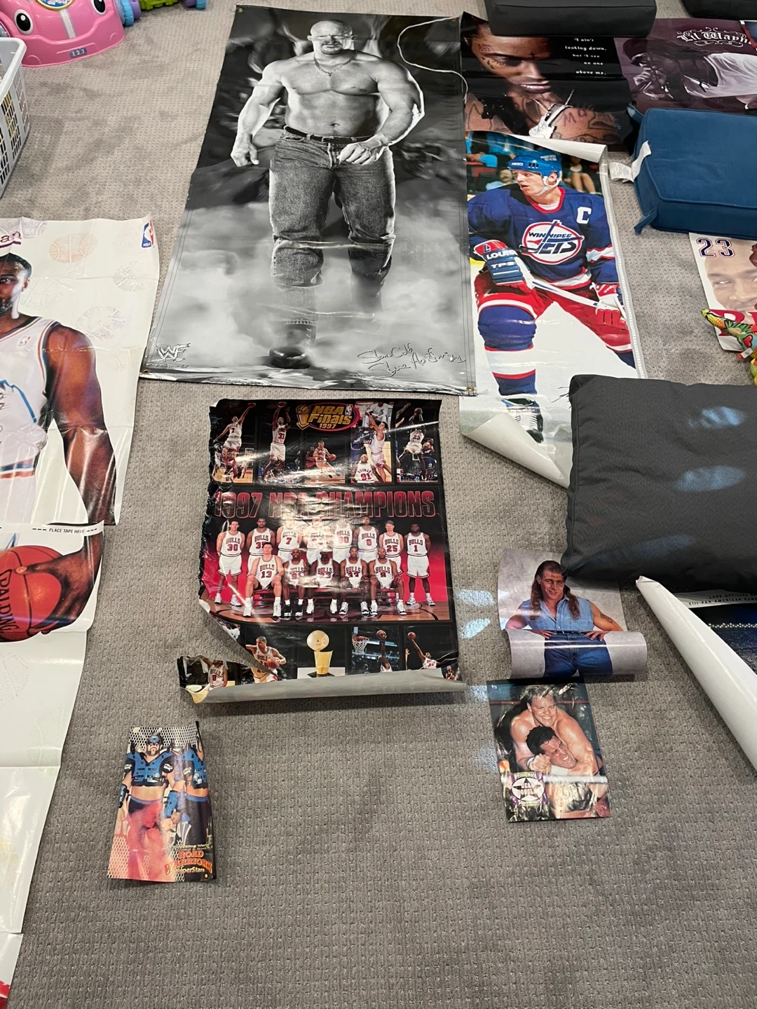 Collection of posters and photos featuring various celebrities from the 90s and 2000s, including athletes and musicians. These are perfect for collectors or fans wanting a blast from the past!
