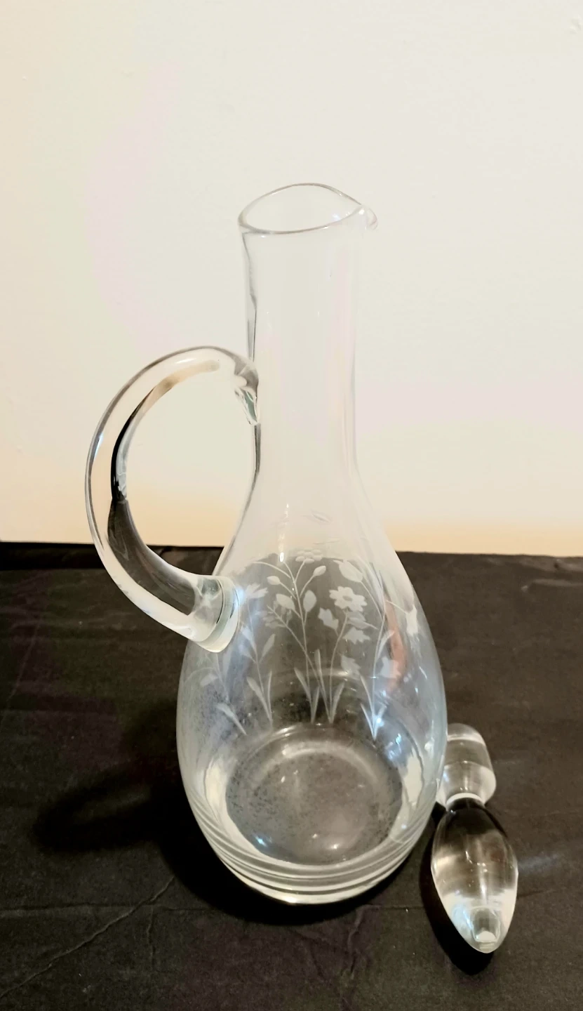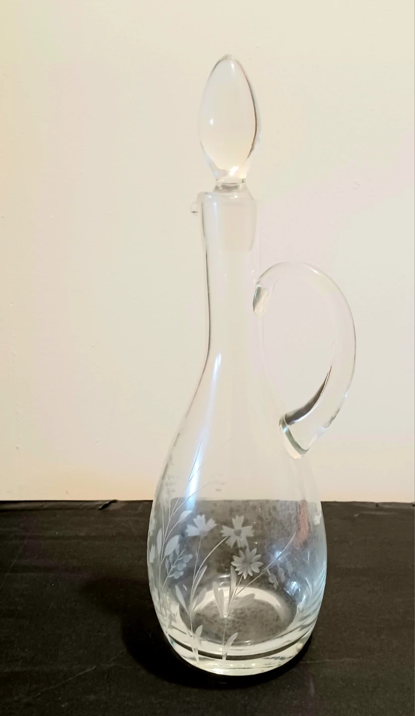 Vtg Etched Floral Crystal Decanter