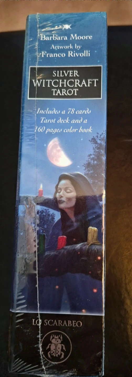 This is the Silver Witchcraft Tarot deck by Barbara Moore and Franco Rivolli. It includes a 78-card Tarot deck and a 160-page colour book. Use the cards and book for divination and connecting with the Divine.