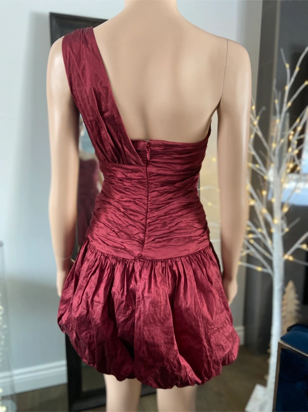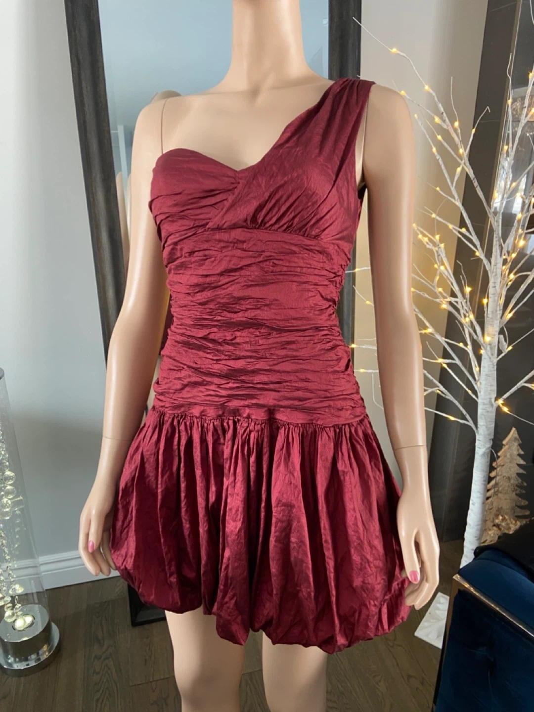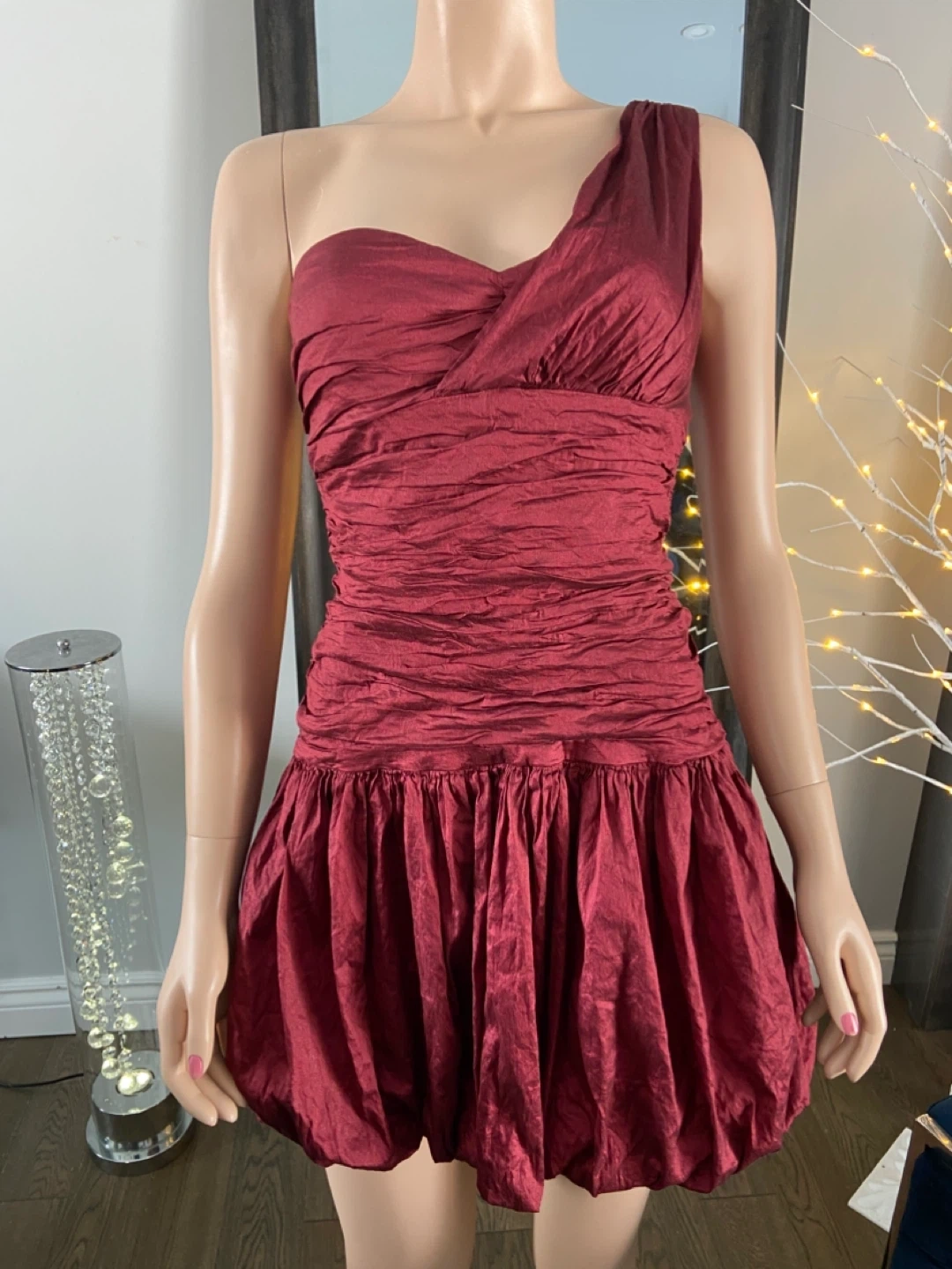 NWOT Red One-Shoulder Ruched Bubble Hem Dress 6