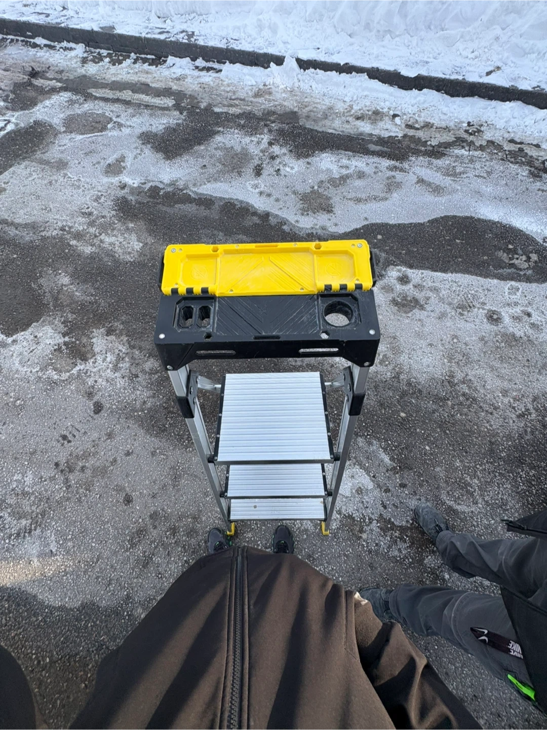 This Gorilla ladder work platform has multiple levels and a sturdy build. It's ideal for various DIY and home improvement tasks. The platform is foldable for easy storage.
