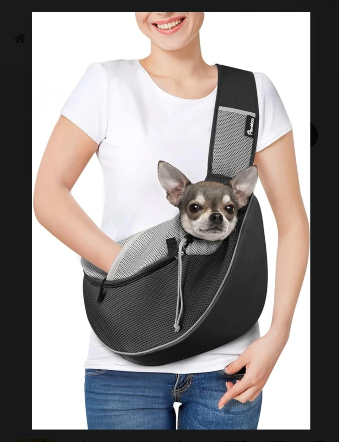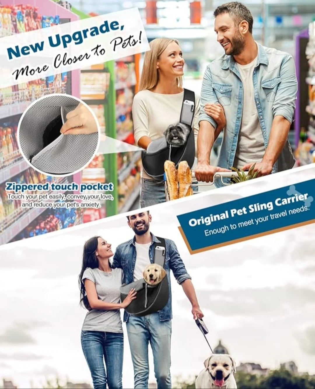Small-Pawaboo Dog Sling Carrier, Dog Papoose with Zipper Touch Pocket, Hand Free Breathable Mesh Puppy Carrier, Crossbody Satchel Dog Purse with Adjustable Strap for Outdoor Travel, Black, Small