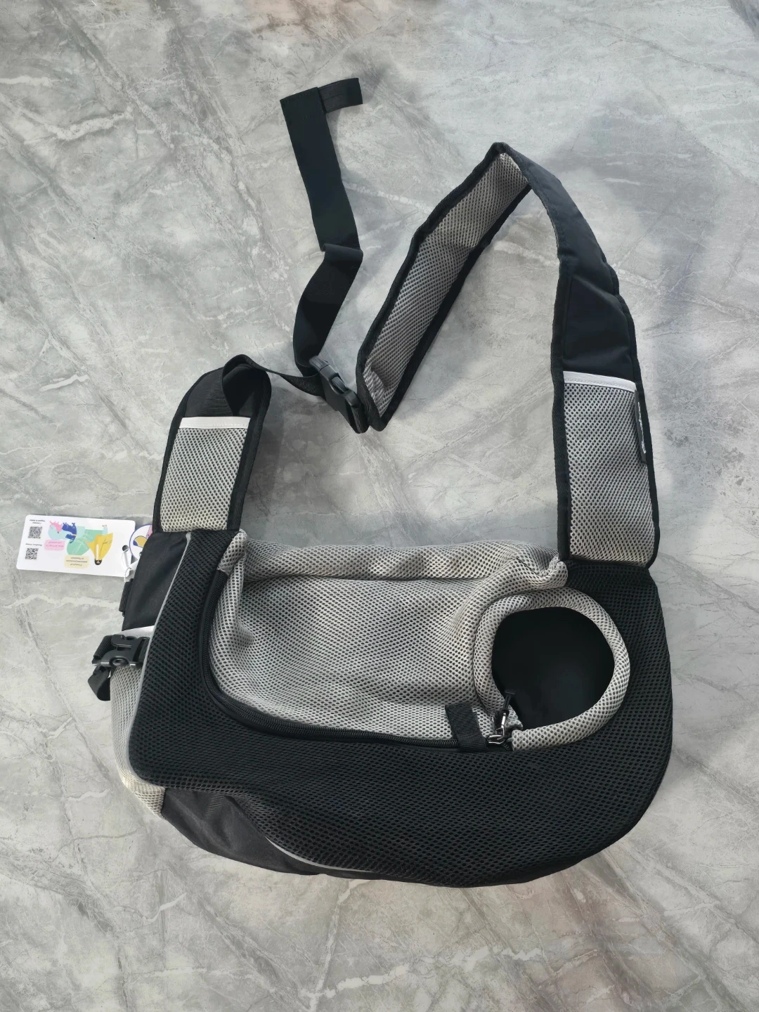 This pet carrier sling bag is made from three-layer soft mesh cloth and thick Oxford cloth for durability and breathability. It features a comfortable shoulder strap with an adjustable buckle and a built-in safety strap to keep your pet secure. The opening mouth's tightness can be adjusted with a drawstring. It's suitable for small to medium pets.