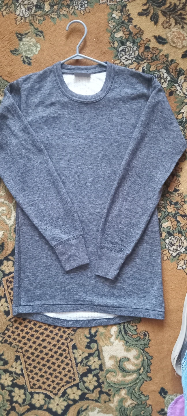 Stanfields long sleeve thermal shirt in grey. It's made with a comfortable blend of materials for warmth. This shirt is great for layering during colder weather. It's a classic crewneck style.