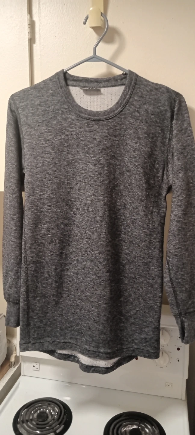 Stanfields long sleeve thermal shirt in grey. It's made with a comfortable blend of materials for warmth. This shirt is great for layering during colder weather. It's a classic crewneck style.