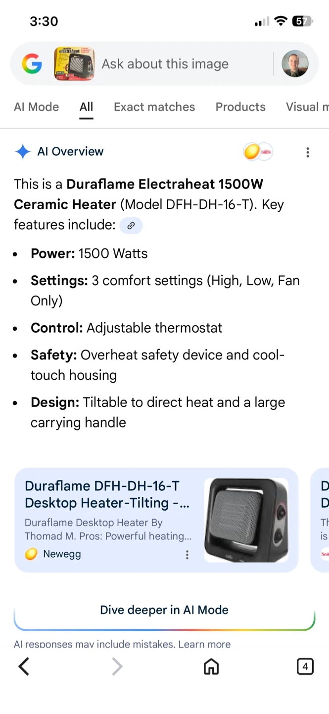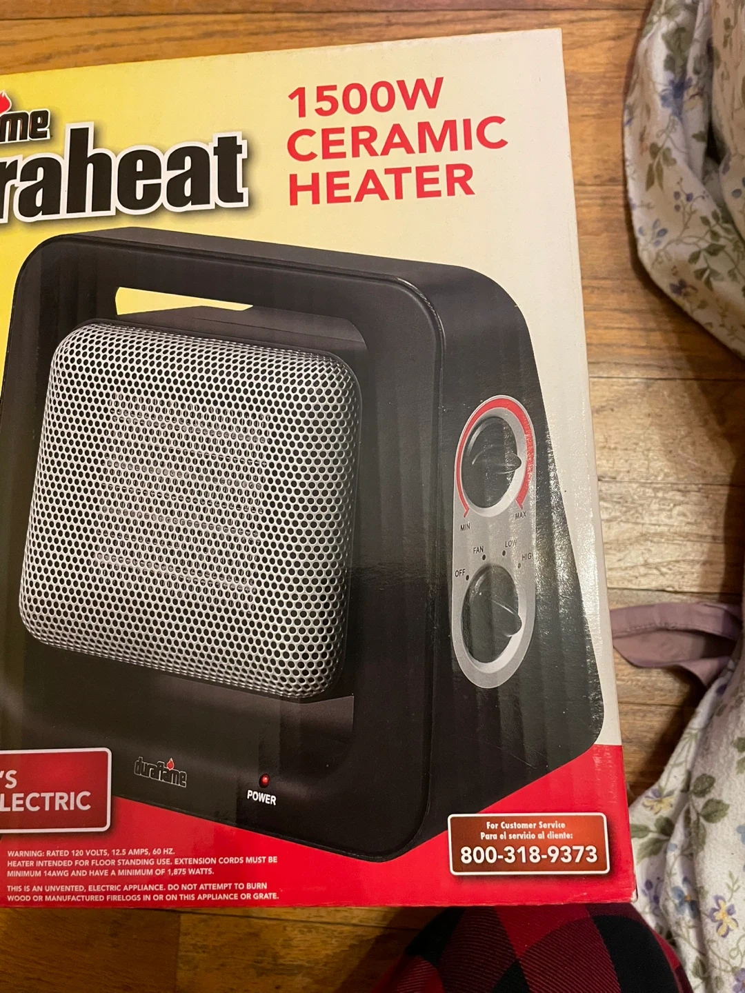 This Duraflame Electraheat ceramic heater offers 1500 watts of power with 3 comfort settings. It has an adjustable thermostat and a tiltable design to direct heat. Features cool-touch housing and an overheat safety device for peace of mind.