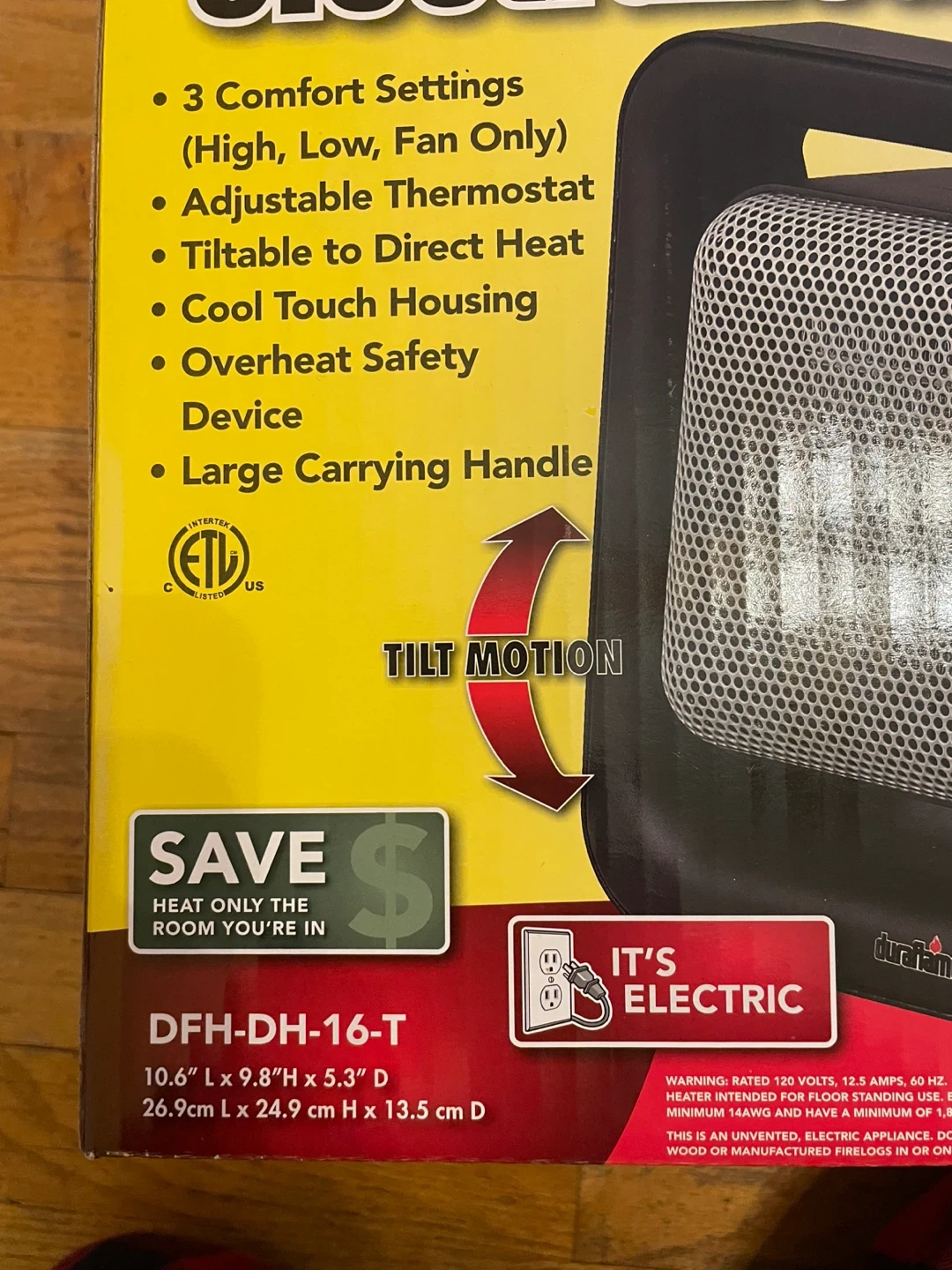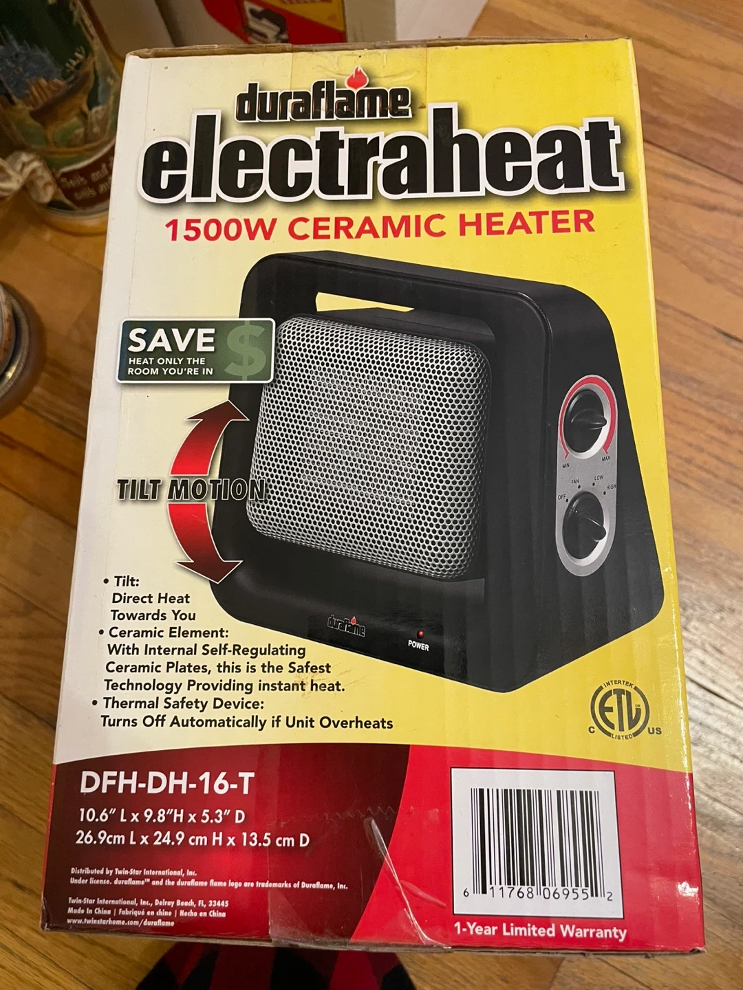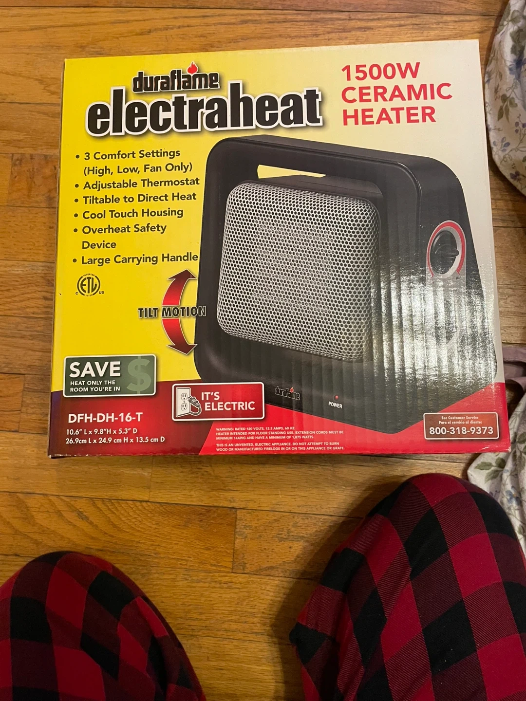 This Duraflame Electraheat ceramic heater offers 1500 watts of power with 3 comfort settings. It has an adjustable thermostat and a tiltable design to direct heat. Features cool-touch housing and an overheat safety device for peace of mind.
