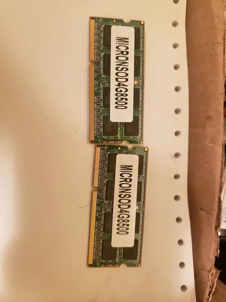 Buy & Sell2x4Gb MICRON PC3 8500 MAC RAM2x4Gb MICRON PC3 8500 MAC RAM$45Like new older RAM for MacBook or MacBook Pro, circa 2014-2015. Feel free to message if you have any questions!WHERE TO MEETcoldstreamView MapSELLERMikeRussell Lake West100 reviews0 chats·0 favorites·3 viewsSEND CHAT TO SELLERHi Mike! I’m interested in your listing.Hi Mike! I’m interested in your listing.Get the Karrot app to chatSign In to chat