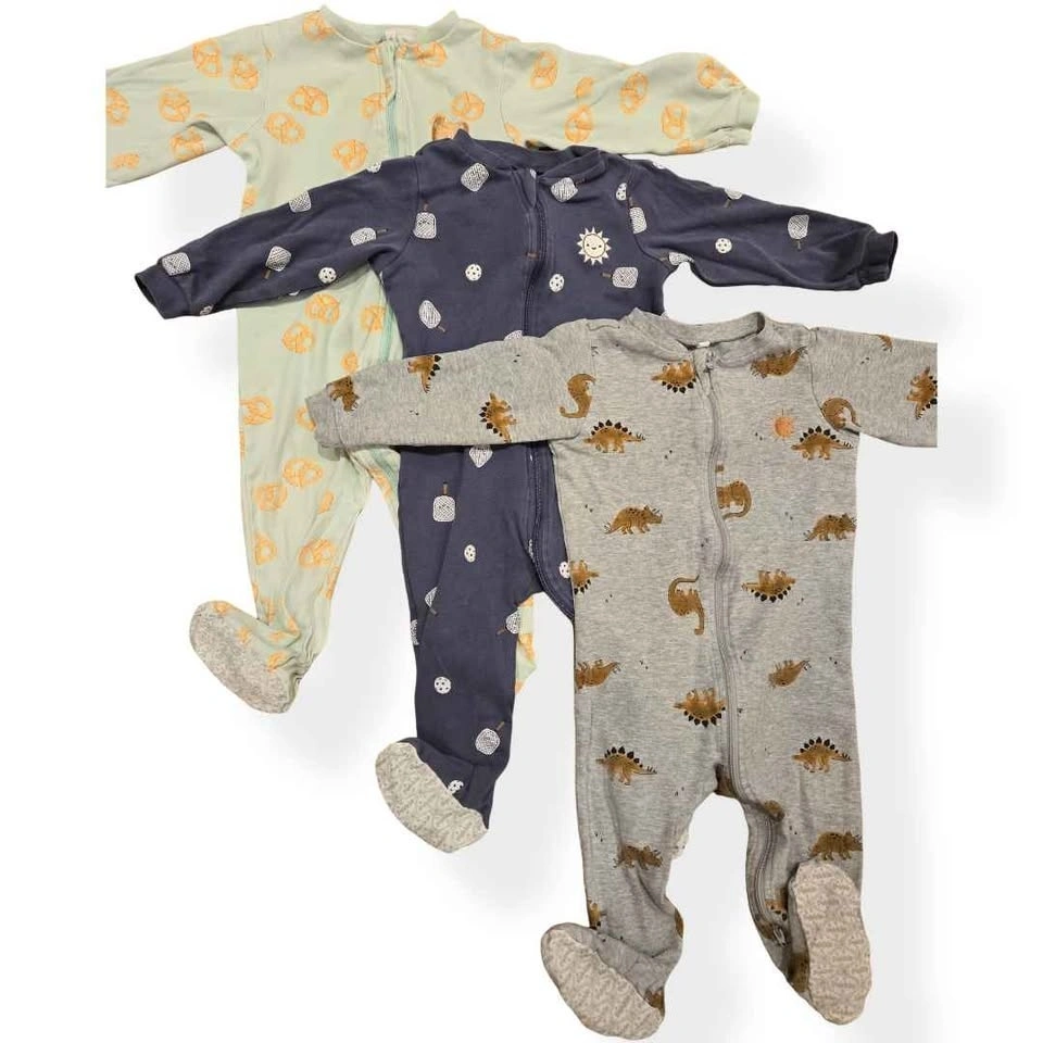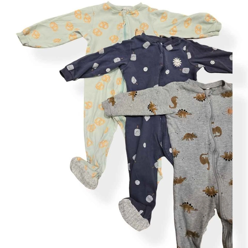 Adorable set of 3 Pekkle sleep & play footed sleepers, size 12 - 18 months, in excellent condition.