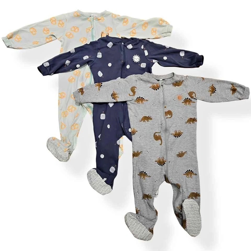 Adorable set of 3 Pekkle sleep & play footed sleepers, size 12 - 18 months, in excellent condition.