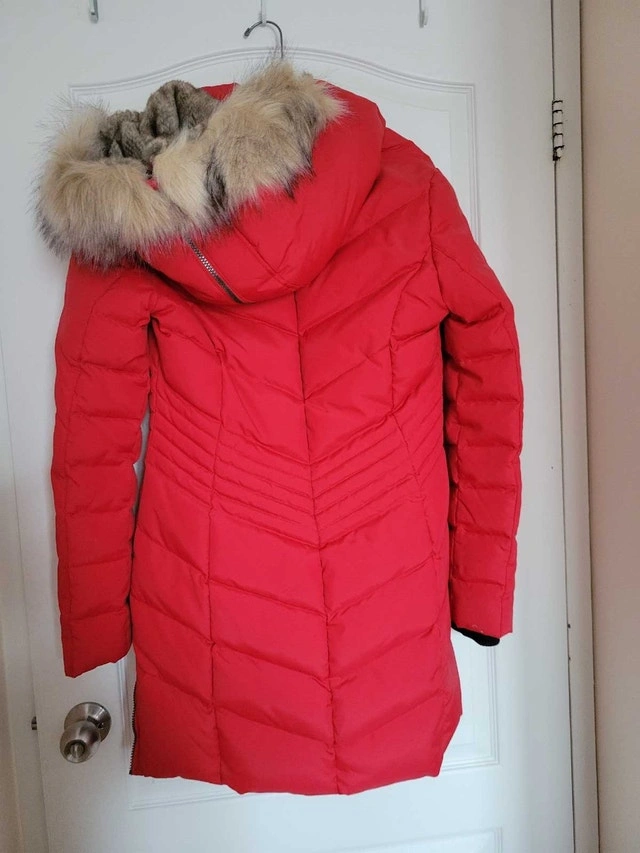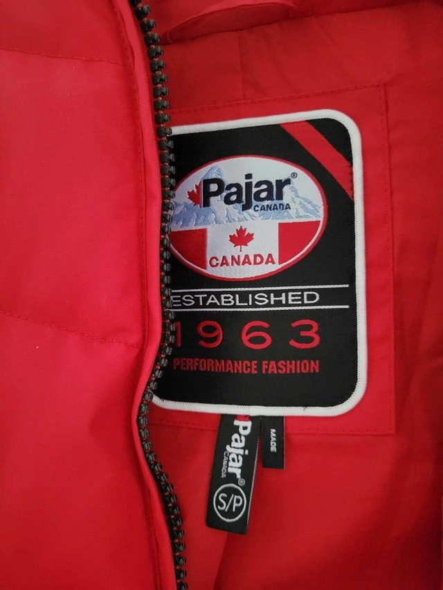 Stay warm and stylish this winter with this Pajar jacket, featuring a vibrant red colour and a cozy faux-fur-trimmed hood. This is a used jacket in good condition, and it has many winter days left in it. Outer shell: 100% Nylon. Lining: 100% Polyester. Fill: 60% Down, 40% Feather. Hood Lining: 50% Acrylic, 50% Modacrylic. If this ad is still up, the jacket is still available. Grab it before the next snowstorm!