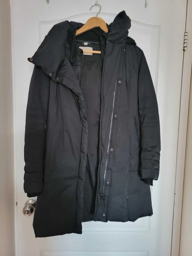 Keep cozy with this used Soia & Kyo black winter coat, size small, designed to keep you warm and stylish during the colder months. The coat features a flattering silhouette and practical details. Specifications: - Brand: Soia & Kyo - Size: Small - Colour: Black - Material: See photos - Condition: Used As the leaves change and the air gets crisp, this coat is ready to be your trusty companion for everything from pumpkin patch visits to snowy strolls! If you're seeing this ad, the coat is waiting for its next adventure.