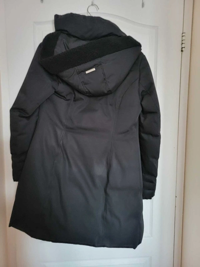 Keep cozy with this used Soia & Kyo black winter coat, size small, designed to keep you warm and stylish during the colder months. The coat features a flattering silhouette and practical details. Specifications: - Brand: Soia & Kyo - Size: Small - Colour: Black - Material: See photos - Condition: Used As the leaves change and the air gets crisp, this coat is ready to be your trusty companion for everything from pumpkin patch visits to snowy strolls! If you're seeing this ad, the coat is waiting for its next adventure.