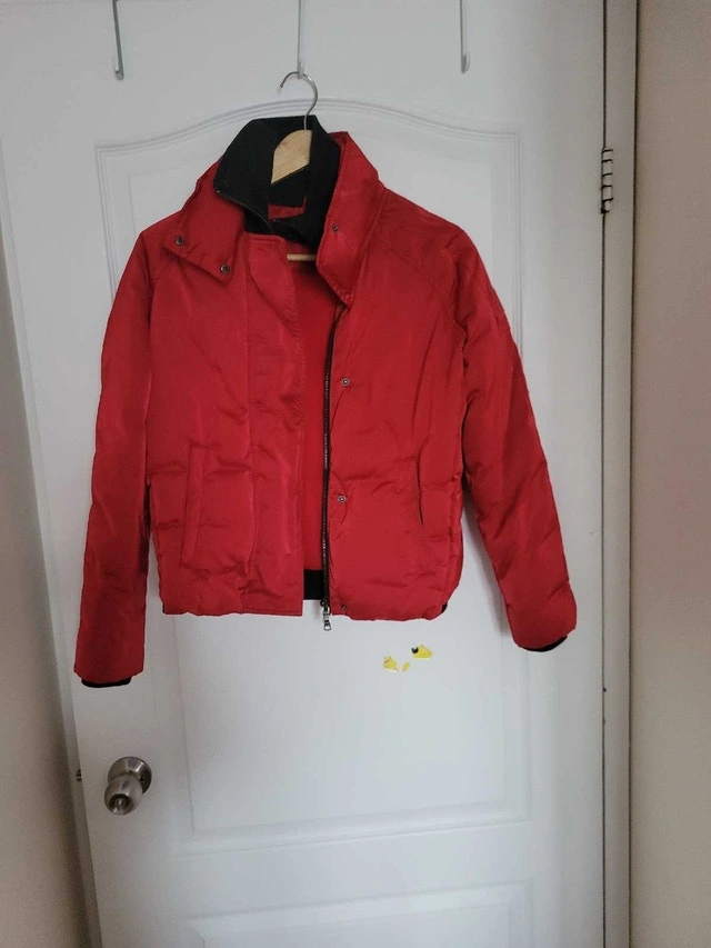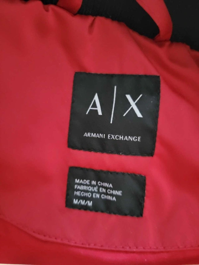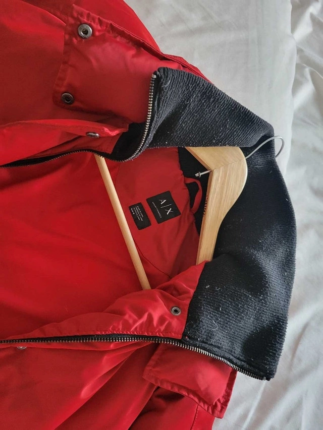 This is an Armani Exchange jacket, perfect for adding a pop of colour to your wardrobe! As seen in the images, it's in good used condition and ready for a new home. It’s a stylish piece that combines fashion and function. Brand: Armani Exchange, Size: M, Colour: Red. If the ad is still up, yes, it’s still available!