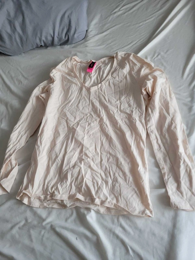 This is a gently worn La Senza long-sleeve top in size M/M. It's made of 100% cotton, making it a comfortable choice for everyday wear. A versatile addition to your wardrobe, perfect for layering or wearing on its own! If the ad's still up, it's still available.