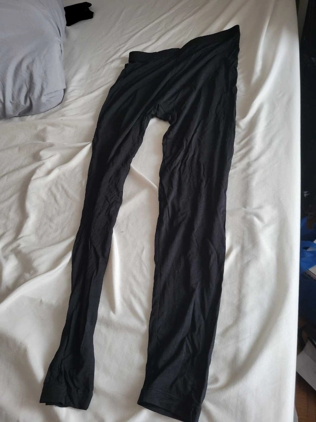 These are a pair of black leggings, perfect for yoga, running, or just lounging around. They're form-fitting and made from a comfortable, stretchy material. These leggings have been worn, so they're not brand new, but they're still in good condition with lots of life left. Additional features include: High-waisted design, Ankle length, Breathable fabric. Asking $45. If the ad is up, the leggings are available.