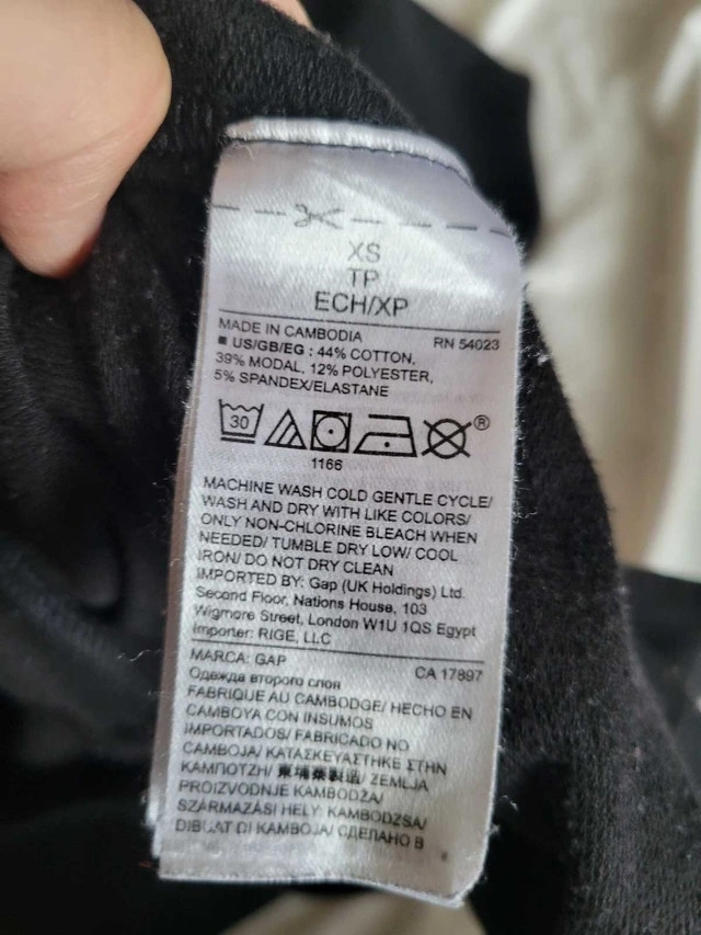 Gently loved, black Gap sweatpants, perfect for lounging or hitting the gym! These are a size XS and have plenty of life left. I'm downsizing my closet and hoping they find a new home. Brand: Gap, Size: XS, Colour: Black, Material: 44% Cotton, 38% Modal, 12% Polyester, 5% Spandex. Condition: Used - Good. Cash accepted.