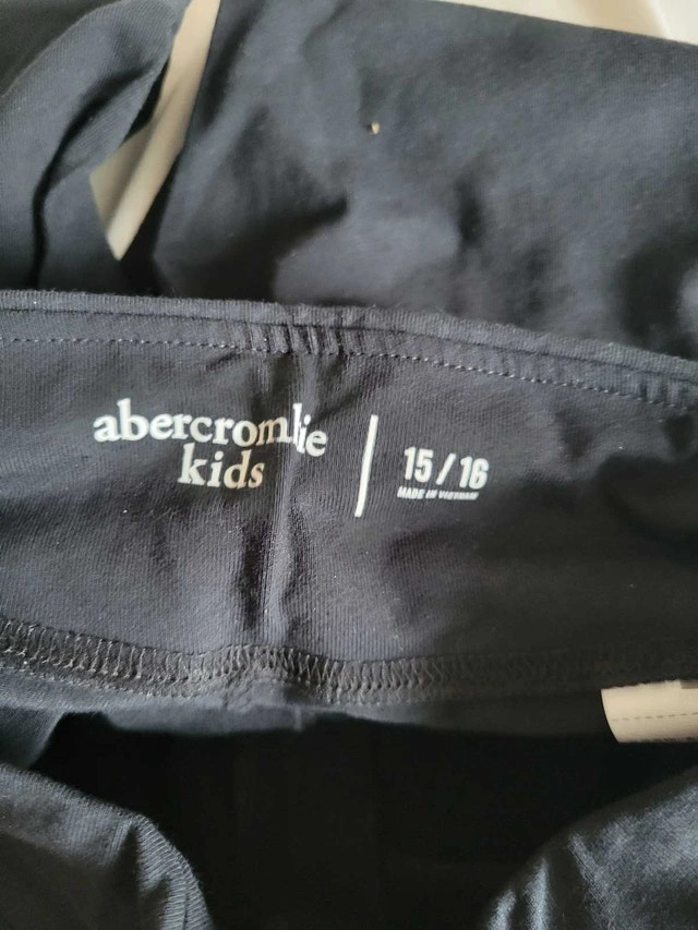 Check out these black Abercrombie Kids leggings, perfect for active youngsters! These are pre-loved leggings, ready for a new adventure. They are size 15/16. Brand: Abercrombie Kids, Size: 15/16, Colour: Black, Material: See tag image for details. These leggings typically sell between $10 and $20. If this ad is still up, the leggings are available!