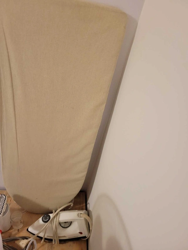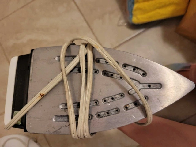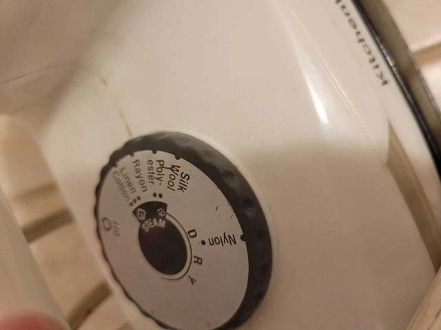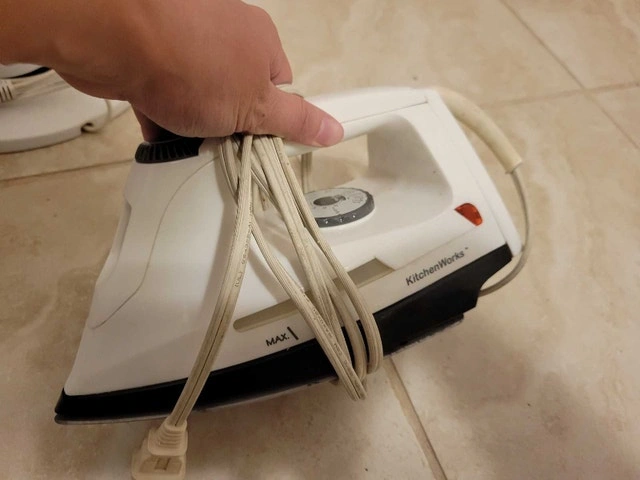 This KitchenWorks iron is perfect for quick touch-ups and everyday ironing needs. It's a reliable appliance with a temperature control dial for various fabric types. While it has served well, the soleplate shows signs of wear, as you can see in the pictures. It also comes with an ironing board. Brand: KitchenWorks. Type: Iron. Features: Temperature control dial. Includes: Ironing board. Cash accepted.
