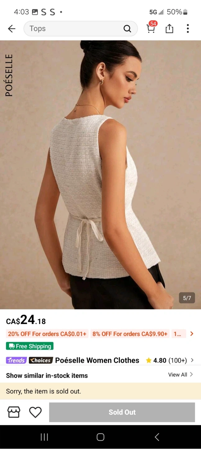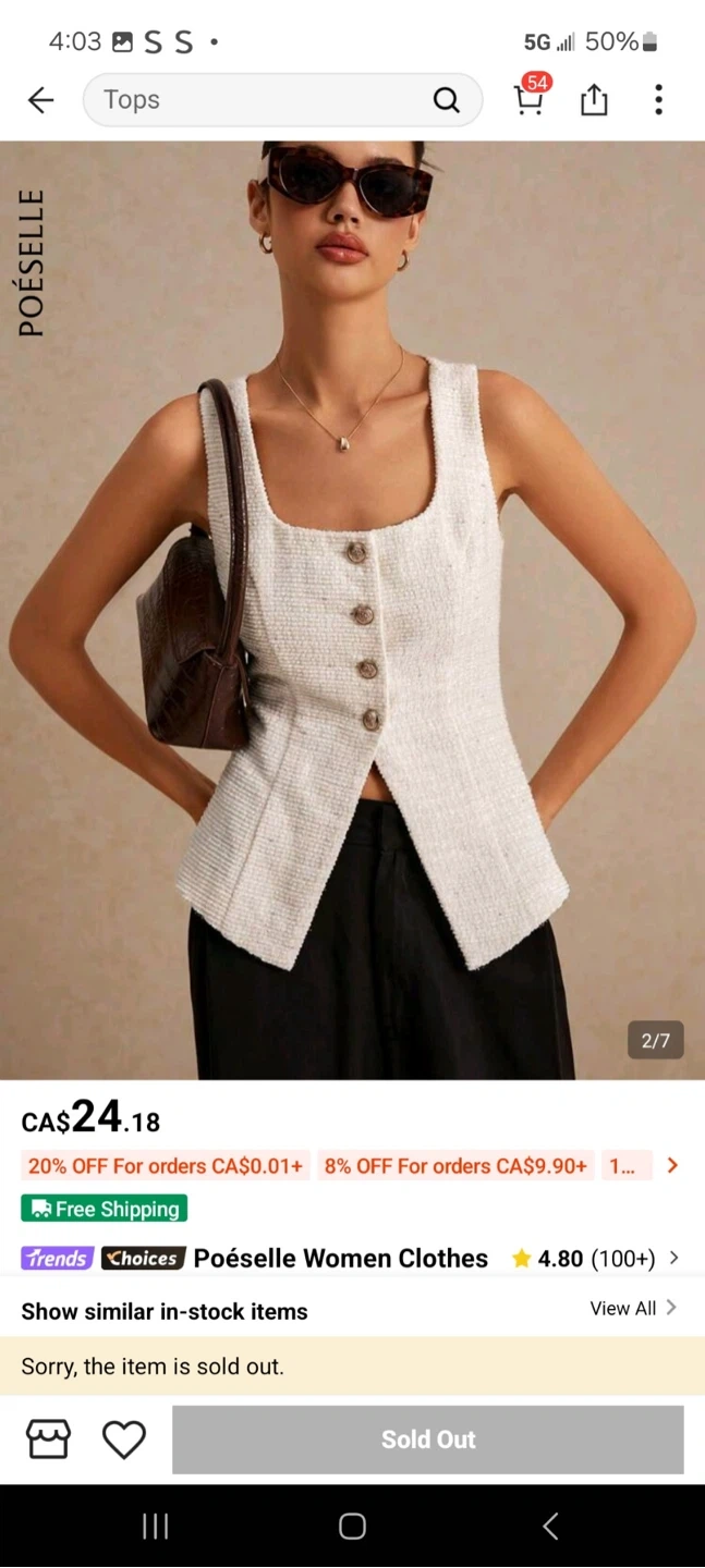 This is a Poéselle women's sleeveless textured top. It features a square neckline and button closure. The material is a textured blend.