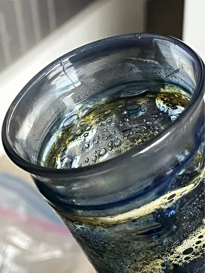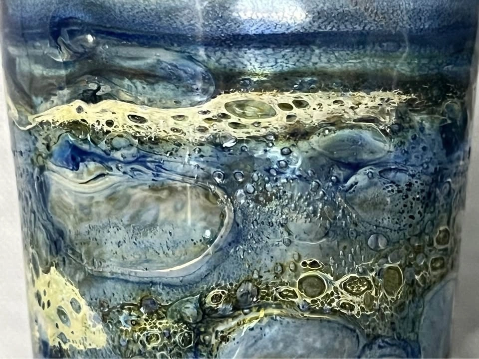 Beautiful, vintage, artisan-made, one-of-a-kind, hand blown glass and silver plated champagne flutes. Features blue and green glass with grape vines sculpted into flute stems. Made in France. Price is for the pair.