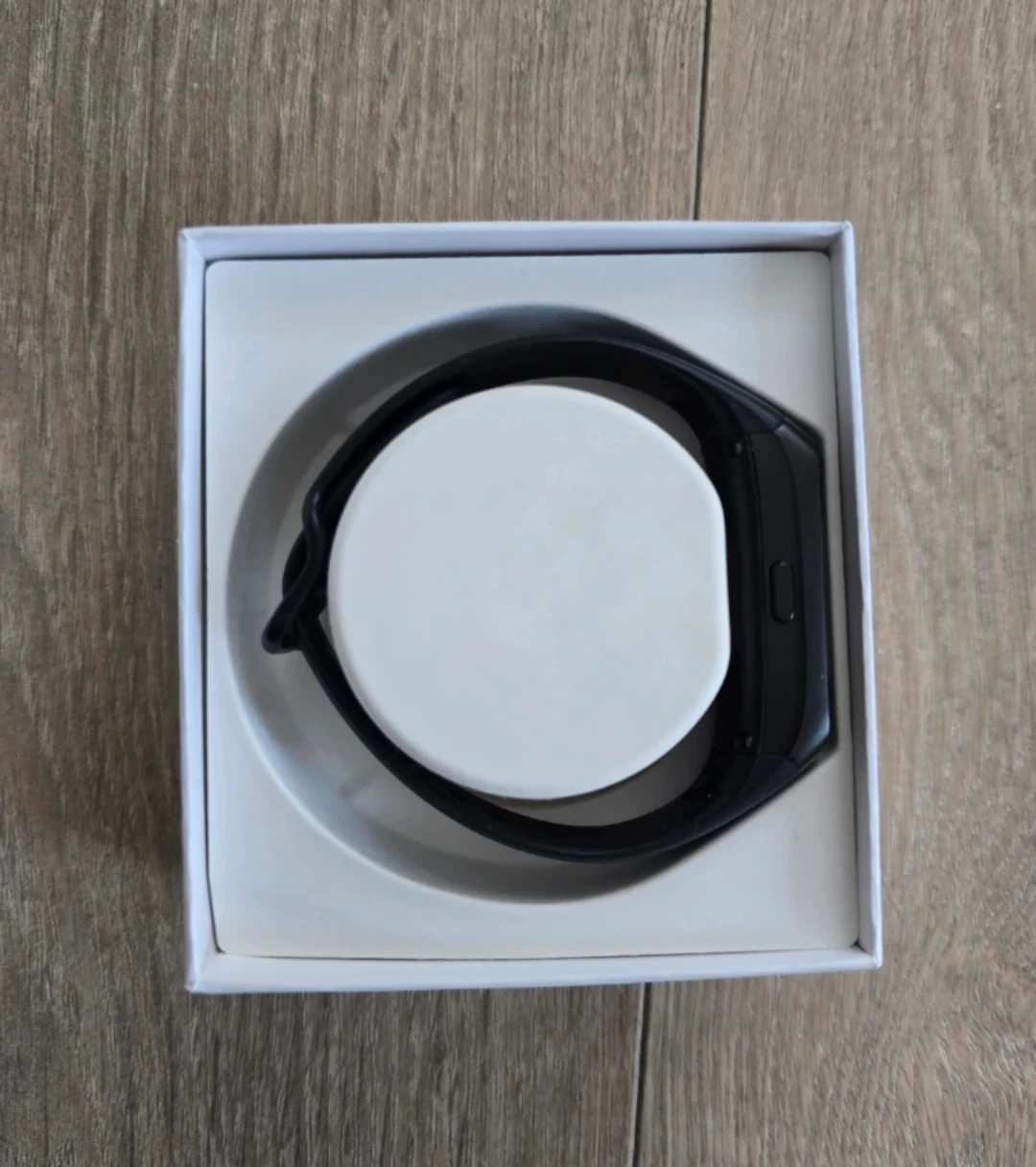 Samsung Galaxy Fit watch/tracker in black. It's in its original box with warranty. The box is a bit damaged on the outside but it was never even taken out and put on. Retails for $90.