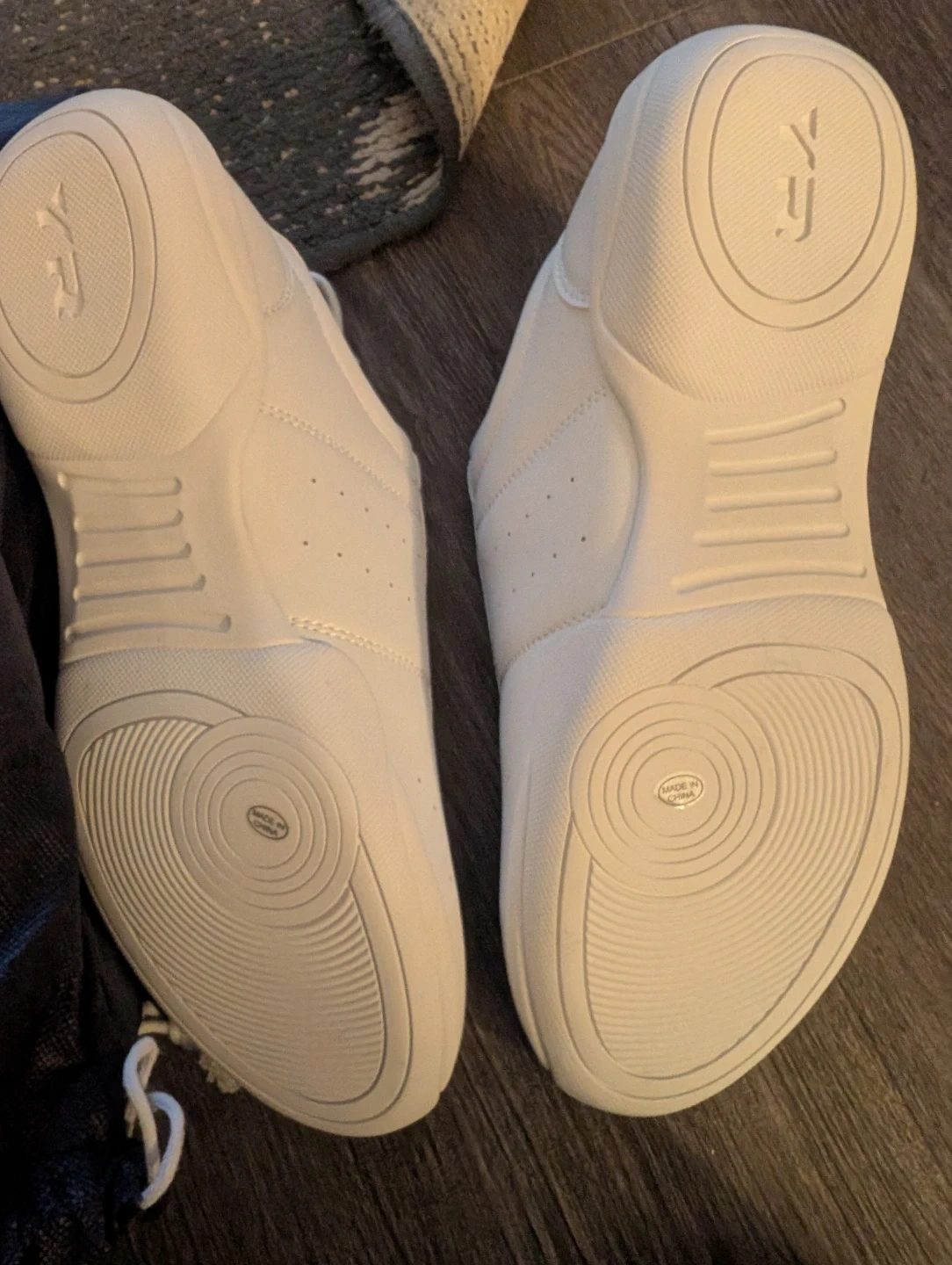 These DADWEN athletic shoes are white with lace-up closure. They're made of synthetic material and come with a drawstring bag. The shoes are lightweight and designed for performance