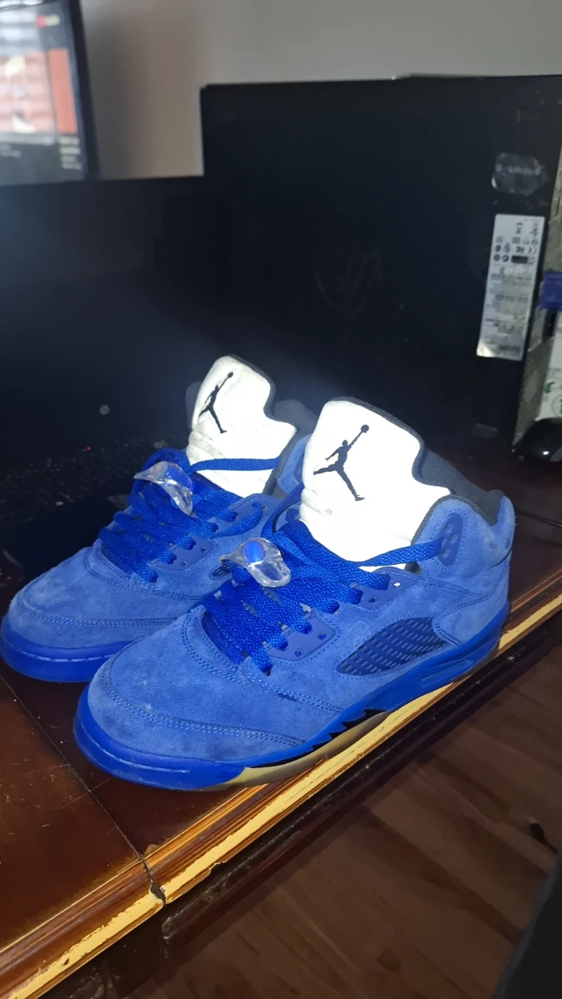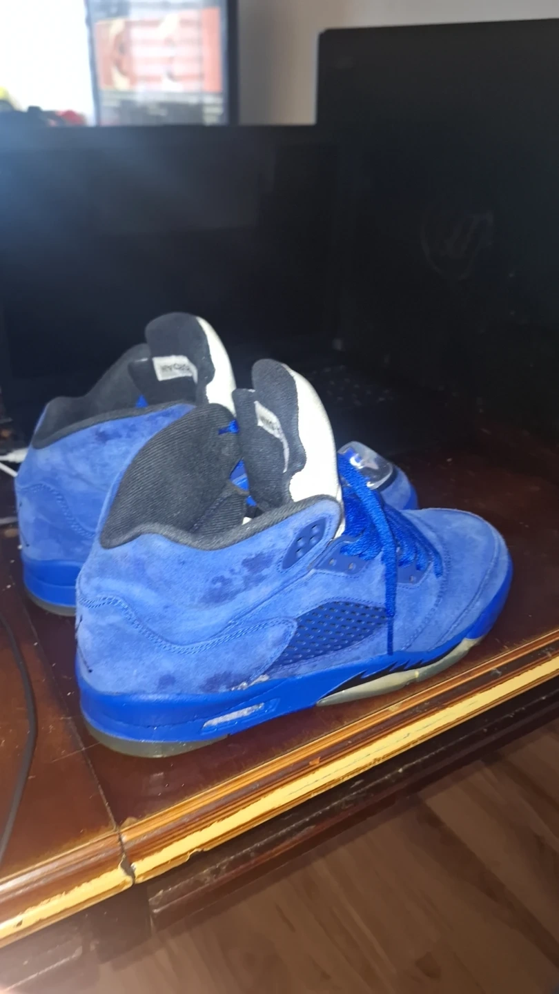 These are Air Jordan 5 blue suede shoes come with a nice royal blue it is used im selling it for a good price