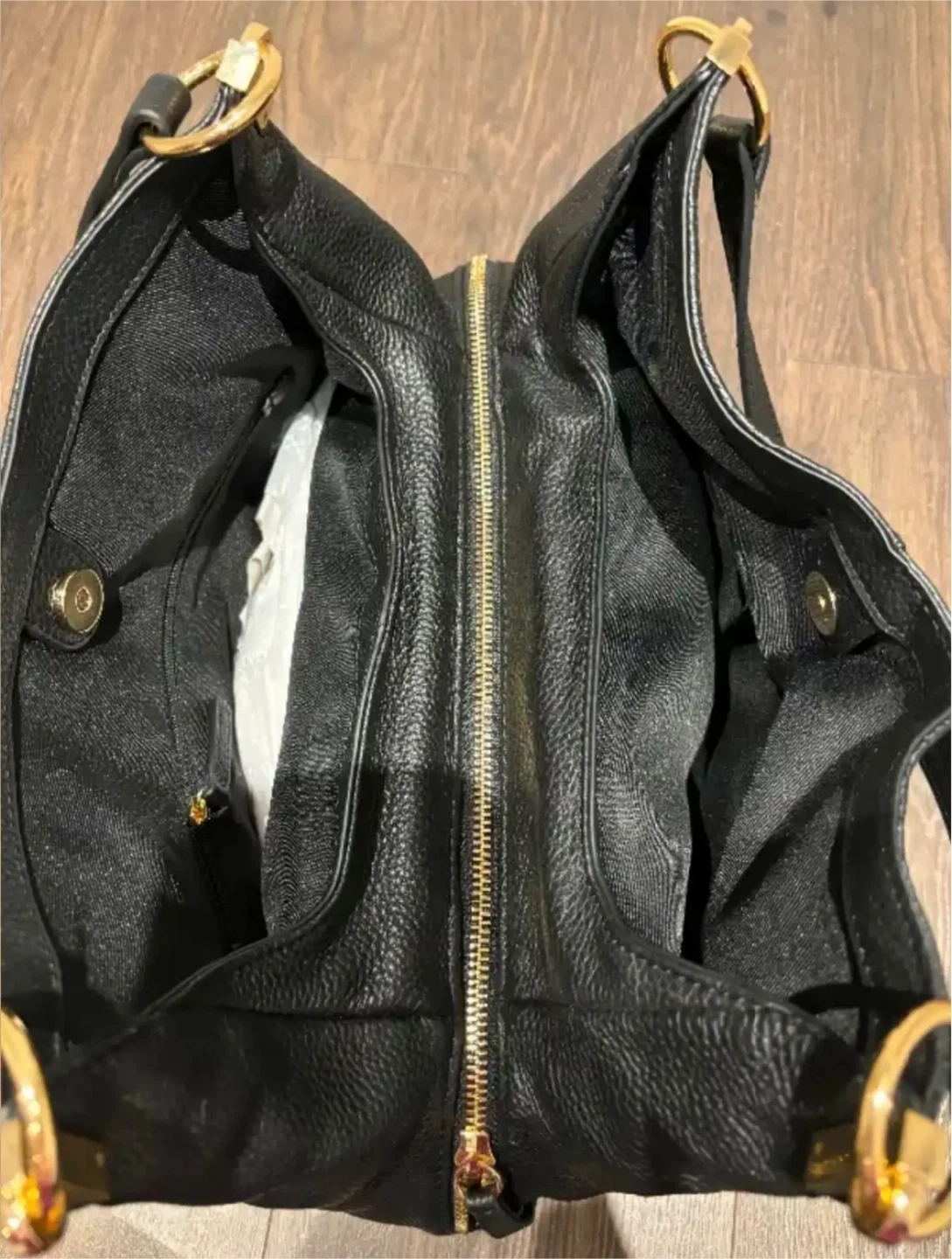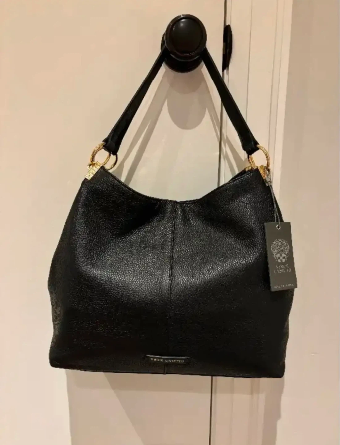 Vince Camuto designer black leather purse, tote bag new with tags. Dimensions are as follows: Base of purse 12 inches long, 5 inches wide and 10 inches high not including the shoulder straps. Retails for $248 US tags attached. Pick up in Etobicoke by Kipling and Bloor.