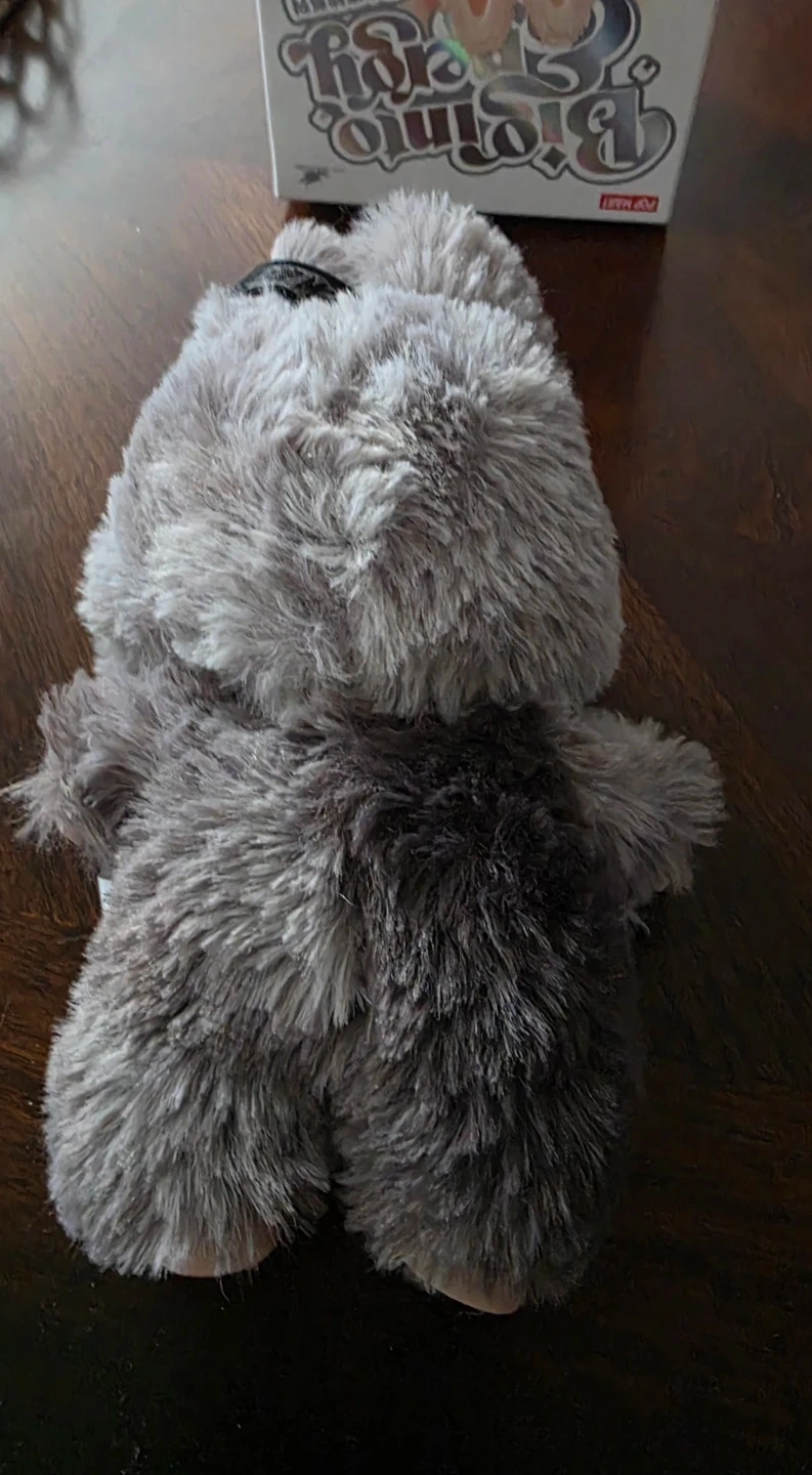 This is a POP MART blind box figure, featuring a fuzzy grey character with colourful rainbow teeth and big, expressive eyes. It's a fun collectible toy! The item comes with its original box.
