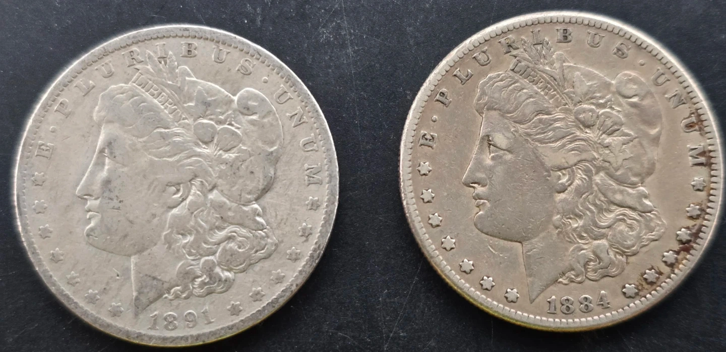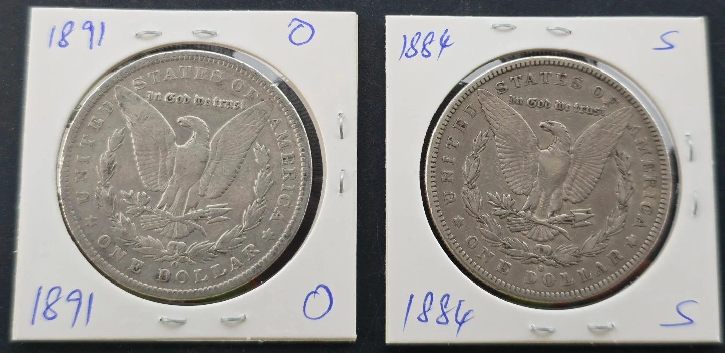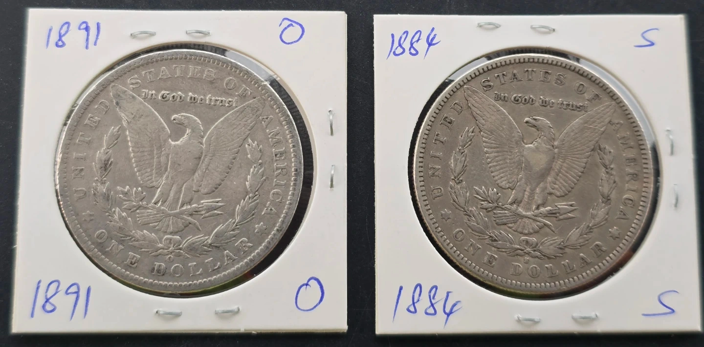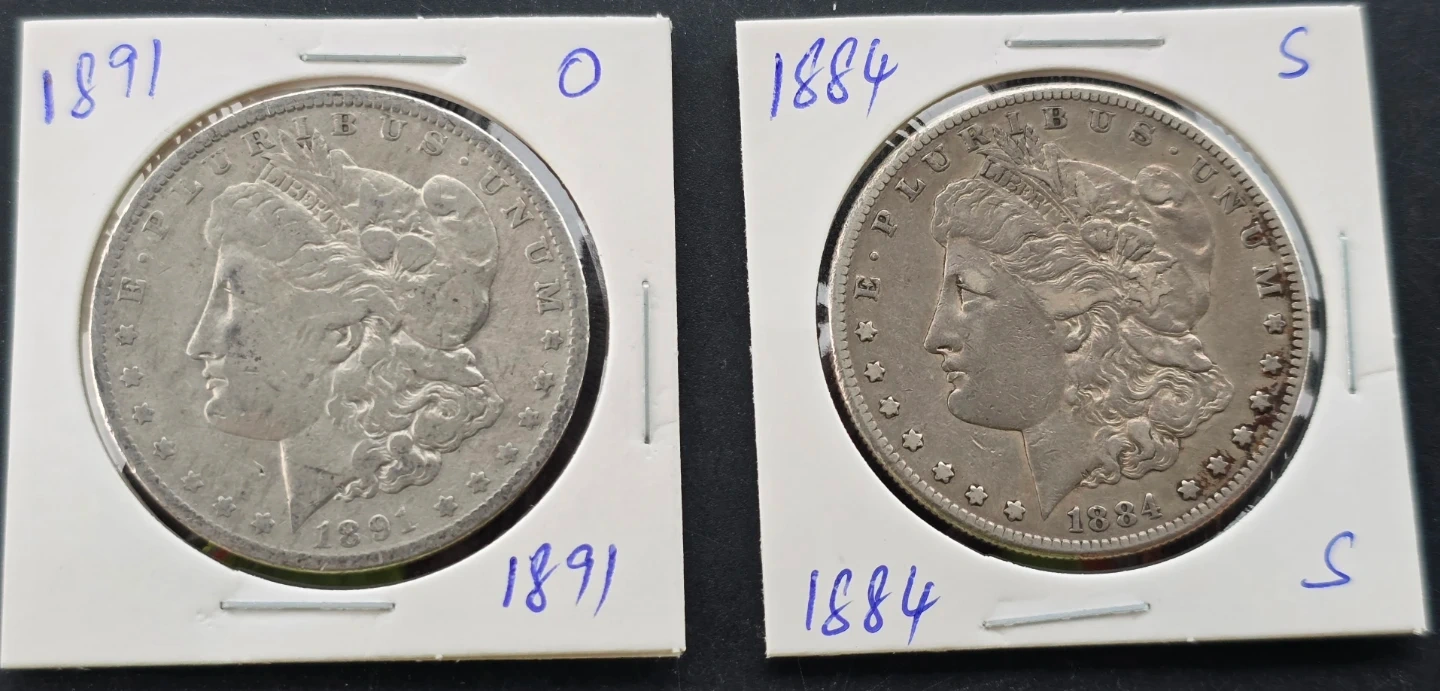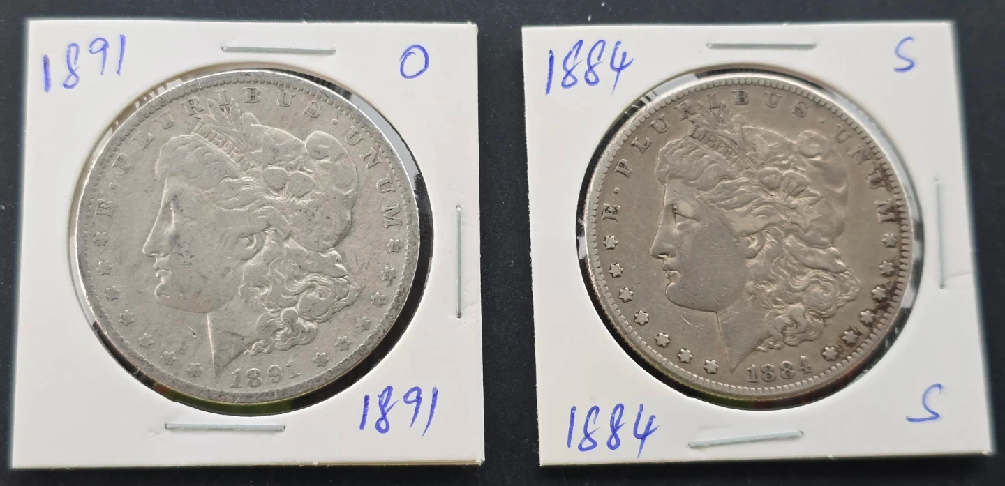 (2) Morgan Silver Dollars - 1891-O & 1884-S (90% Silver)