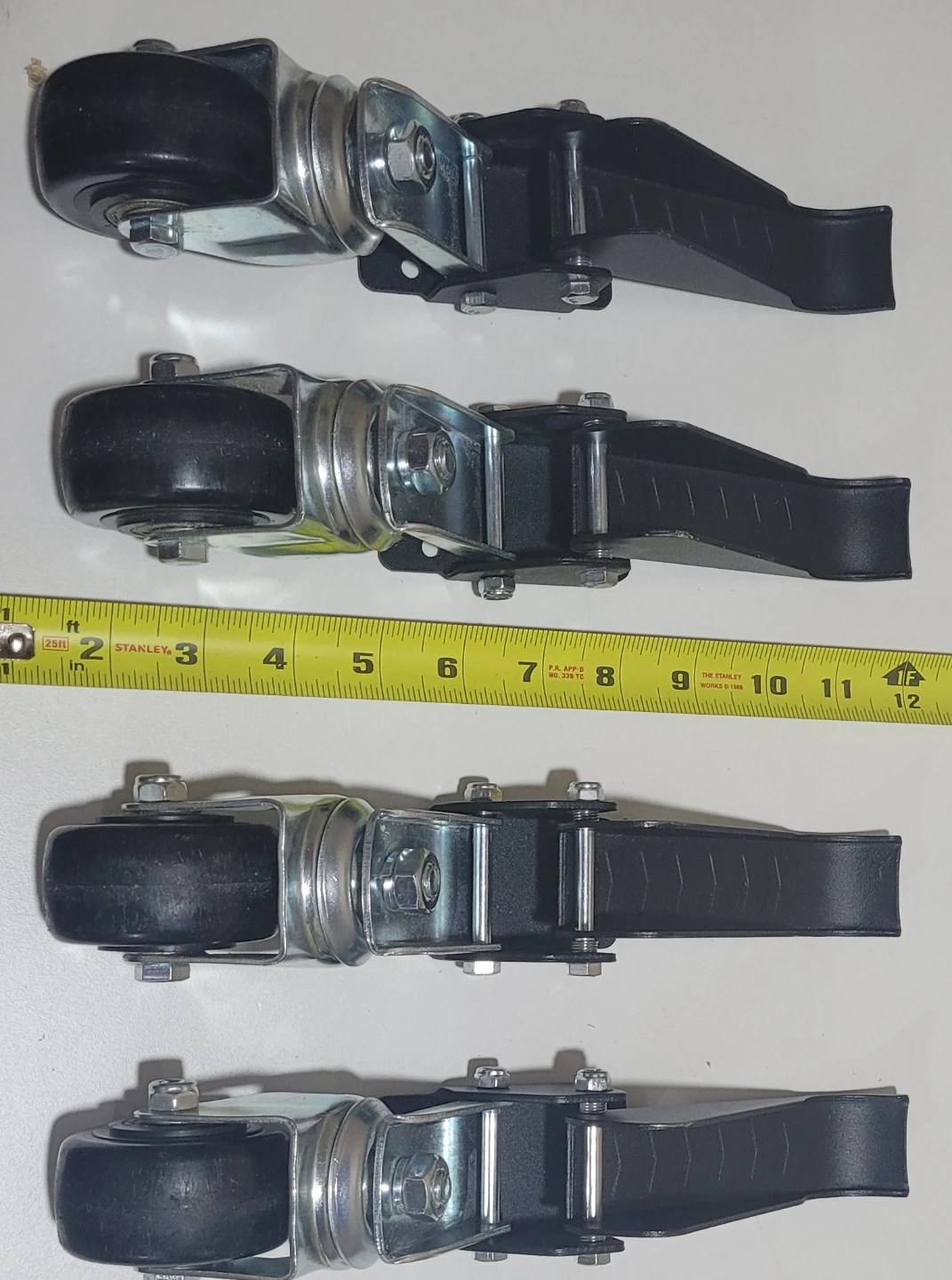 EASY TO OPERATE: The retractable caster is different from ordinary casters in that it is side-mounted. It is very easy to use, just put your foot on the pedal and step down to lift it while operating, then if you lower the workbench, you just need to lift the pedal. The item comes with instructions and installation template.