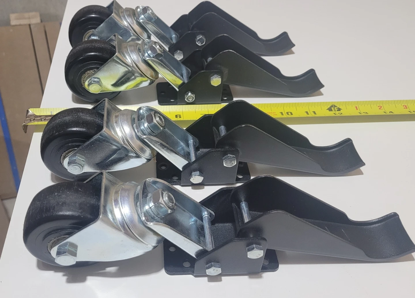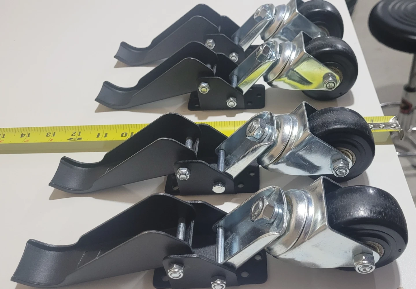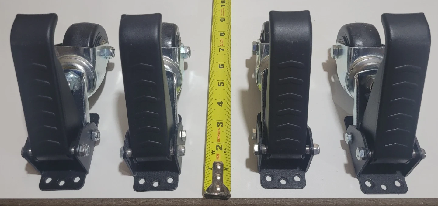EASY TO OPERATE: The retractable caster is different from ordinary casters in that it is side-mounted. It is very easy to use, just put your foot on the pedal and step down to lift it while operating, then if you lower the workbench, you just need to lift the pedal. The item comes with instructions and installation template.