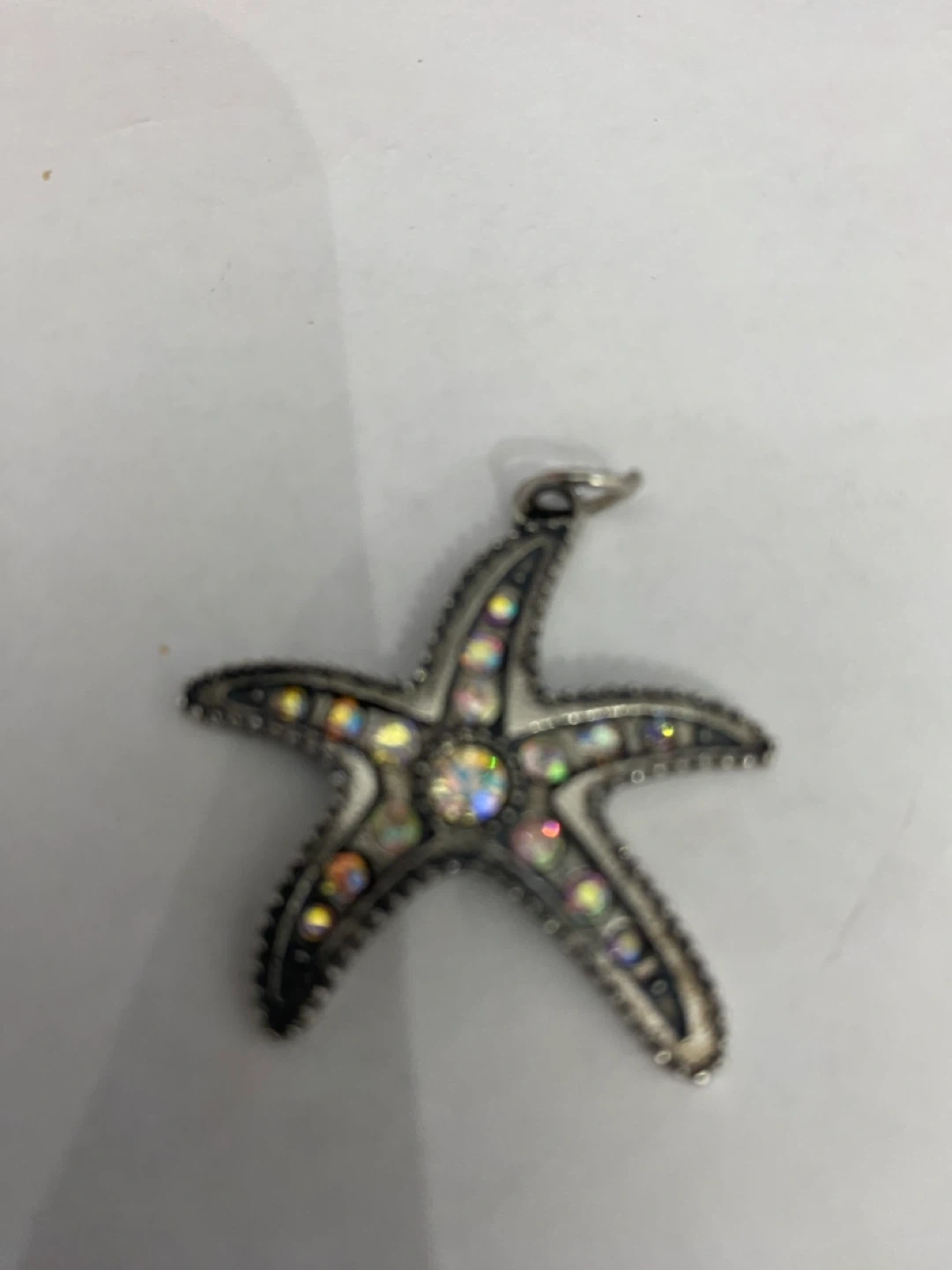 Beautiful star Fish with silver plated and exquisite iridescent stones . Bout the same size as loonie can be worn as earrings or pendant 20$ each or both for 30$ from Mexico