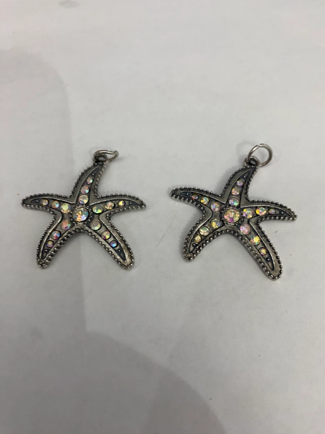 Beautiful star Fish with silver plated and exquisite iridescent stones . Bout the same size as loonie can be worn as earrings or pendant 20$ each or both for 30$ from Mexico