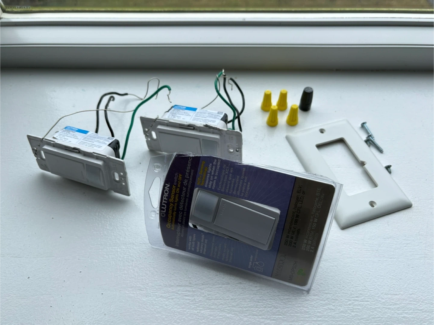 This Lutron Maestro occupancy sensor switch is designed to automatically turn lights on and off. It works with all bulb types and features optional vacancy mode. The switch supports 250 W incandescent, halogen, ELV, 200 W MLV, 150 W CFL, or LED. It includes wire nuts and a faceplate.