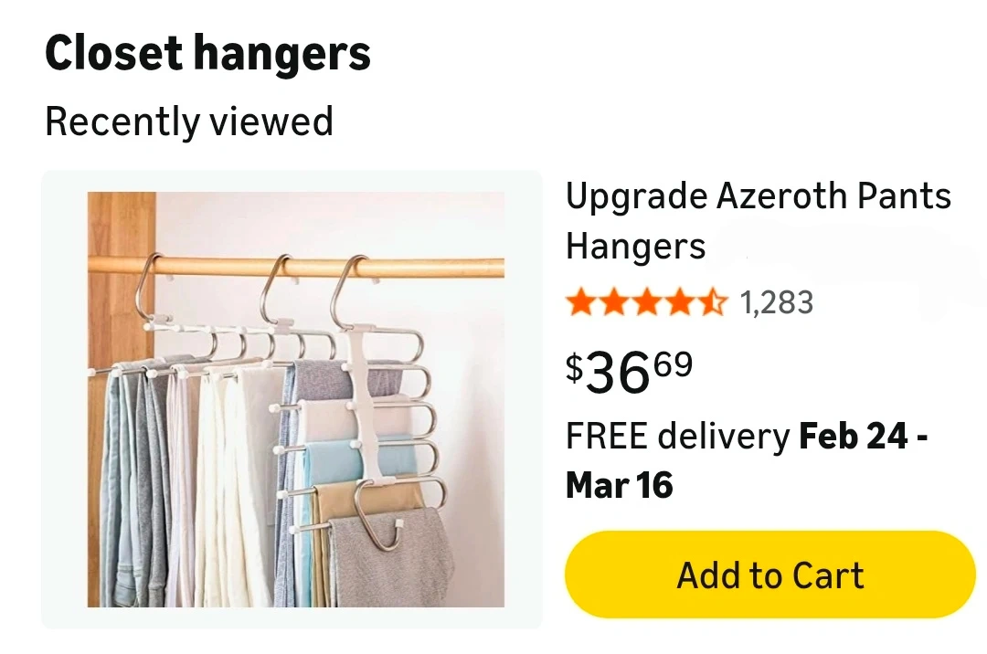 Buy & SellSpace Saving Pants Hangers (x2)Space Saving Pants Hangers (x2)$252x Space Saving Pants Hangers Very strong Never used, see pictures for details -- Pick up Downtown West End Vancouver --ConditionNewWHERE TO MEETJJ Bean Coffee - 1209 Bidwell StView MapSELLERLeahW End24124 reviews0 chats·0 favorites·1 viewsSEND CHAT TO SELLERHi Leah! I’m interested in your listing.Hi Leah! I’m interested in your listing.Get the Karrot app to chatSign In to chat