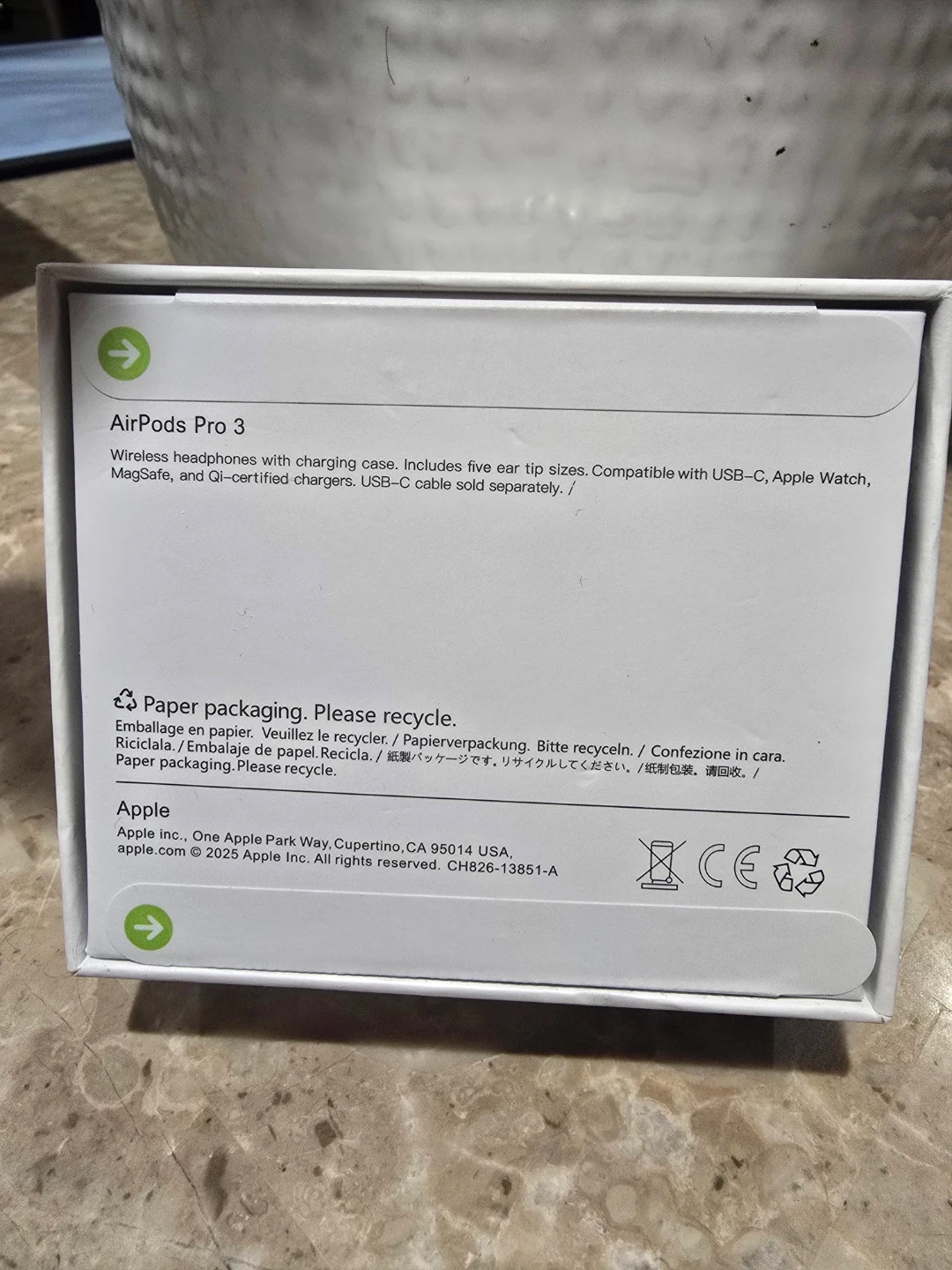 These are Apple AirPods Pro 3 wireless earbuds with a charging case. They include five ear tip sizes .