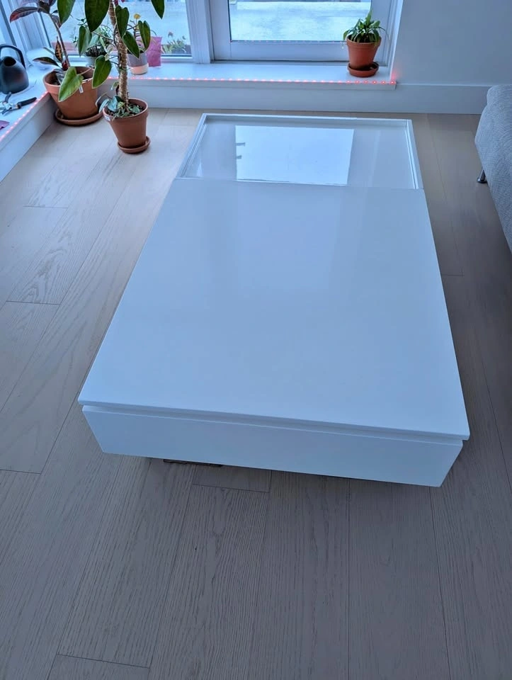 Structube lift top coffee table, same as this link but in white - https://www.structube.com/en_ca/evo-walnut-veneer-lifttop-storage-coffee-table-120-cm-67-60-10?pid=25507