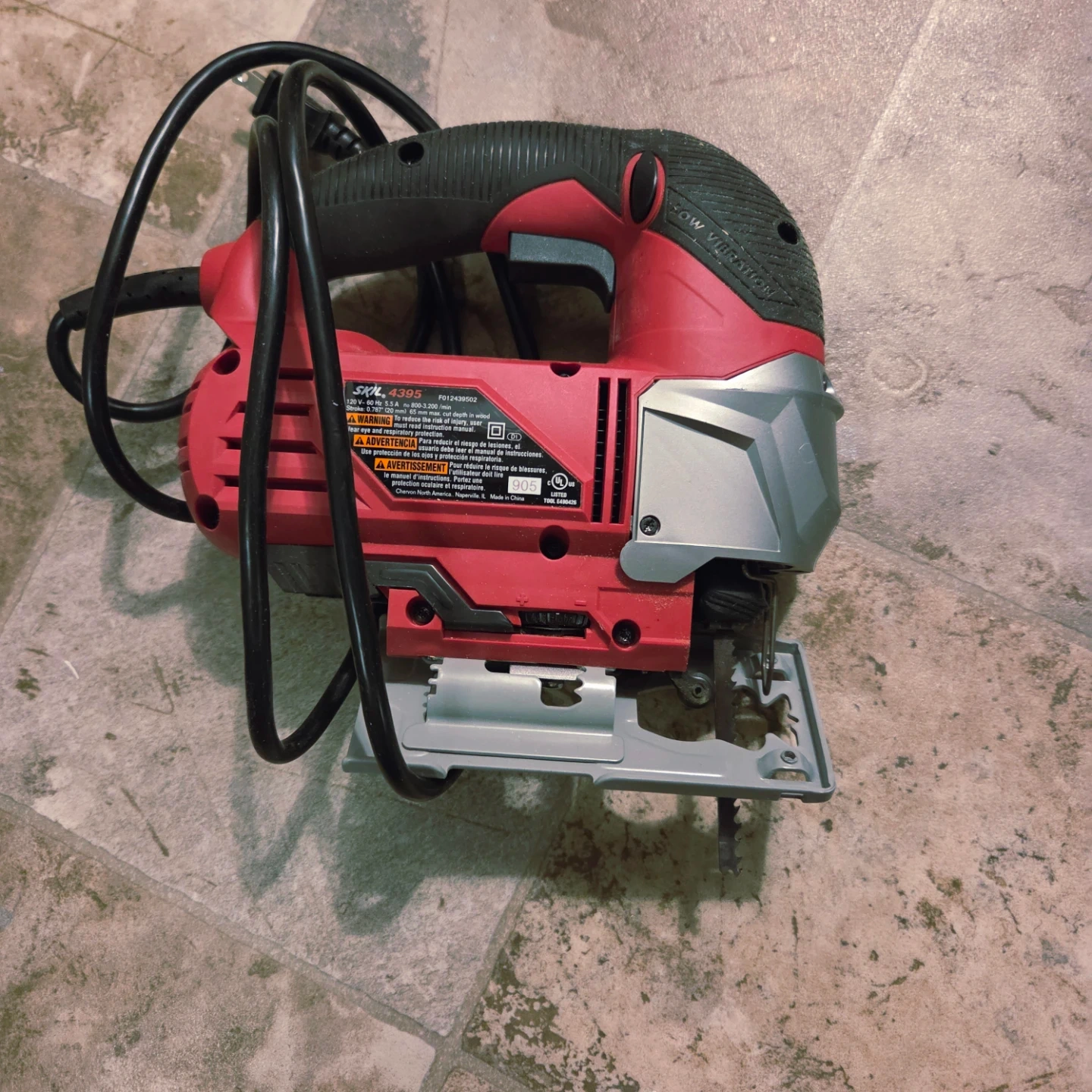 This SKIL jigsaw is in good working condition and includes its original carrying case. It features variable speed control for precision cutting. It's useful for various DIY projects and woodworking tasks.